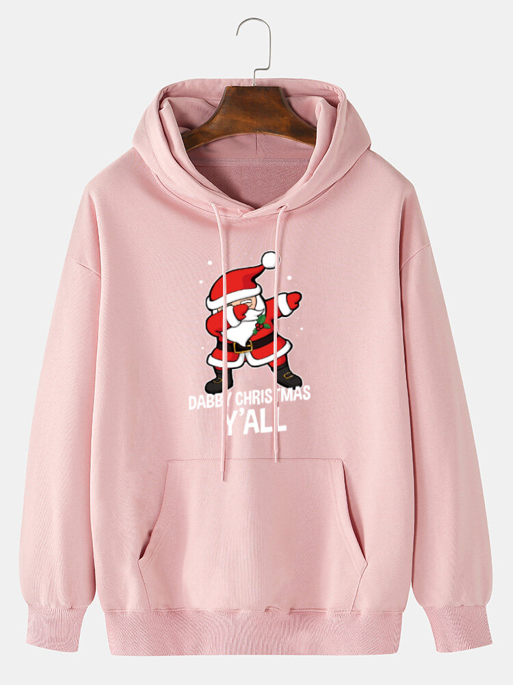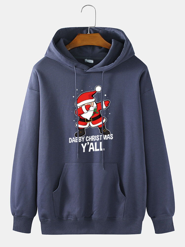 Mens Cartoon Santa Claus Print Cotton Plain Drawstring Pullover Hoodie – Khaki S
