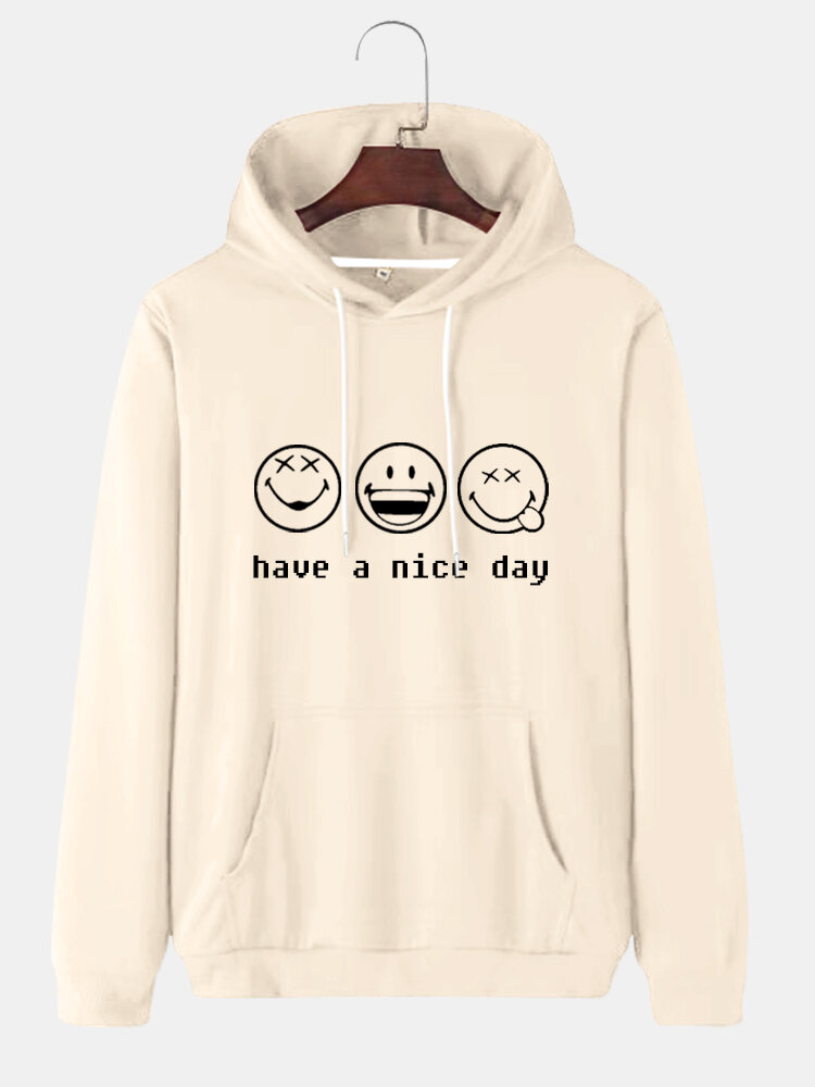 Mens Cartoon Smile Face Slogan Print Cotton Drawstring Overhead Hoodies – Black 2XL