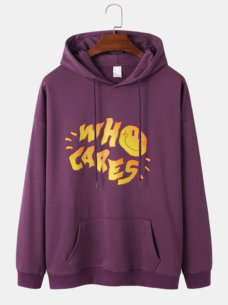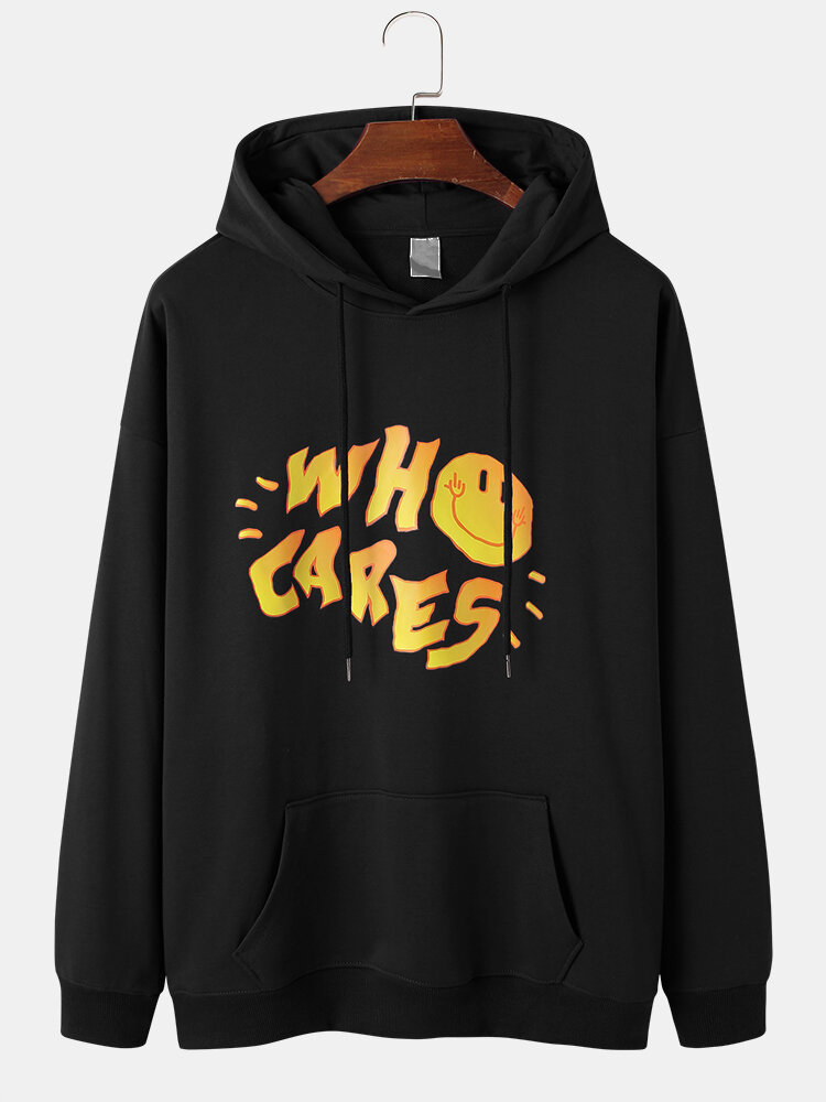 Mens Cartoon Smile Letter Print Cotton Casual Drop Shoulder Pullover Hoodies – Orange 2XL