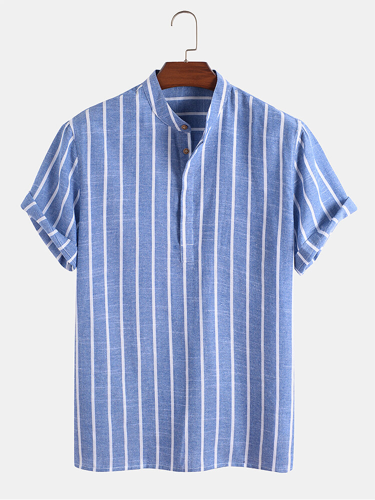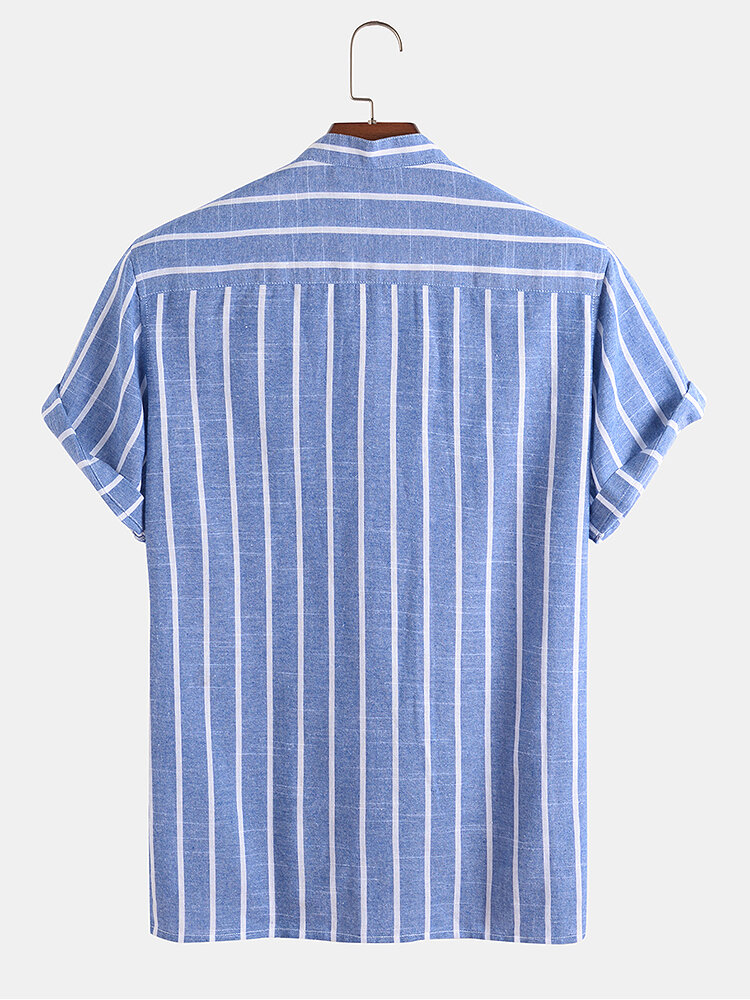 Brand:ChArmkpRDecoration:PocketFit Type:Regular FitMaterial:CottonNeckline:Stand CollarPattern Type:StripedScene:Leisure,Home,CasualSeason:SummerSize:XXL,L,S,XL,MSleeve:Short SleeveStyle:CasualThickness:Regular