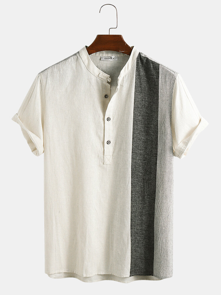 Mens Casual 100% Cotton Patchwork Breathalbe Short Sleeve Henley Shirts – White XL