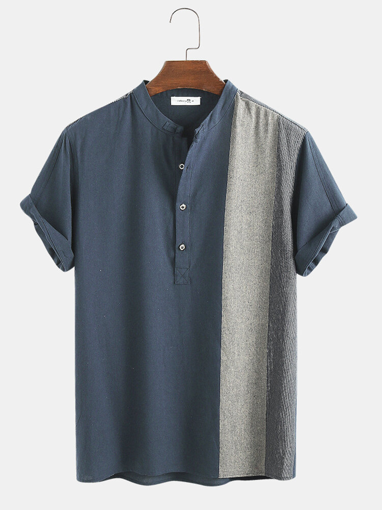 Description:Item Type: Henley ShirtsPattern Type: Solid ColorGender: MenFit Type: FitStyle: Casual,FashionThickness: RegularCollar: Stand CollarSeason: SummerDecorations: ButtonsMaterial: 100% Cotton Sleeve Length: Short SleeveColor: Blue,WhiteCuff Type: Shirt SleeveOccasion: Leisure,Home,Daylife