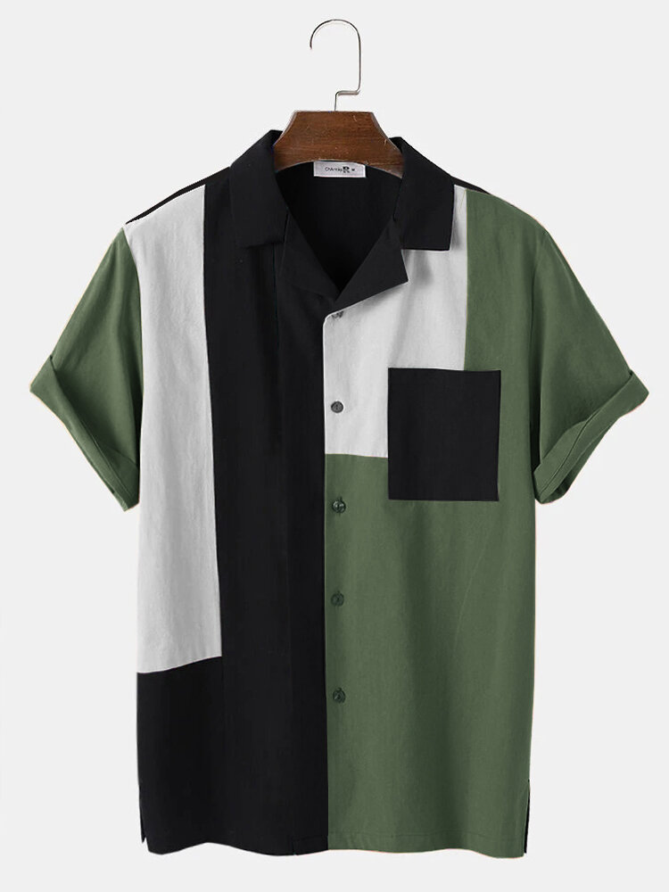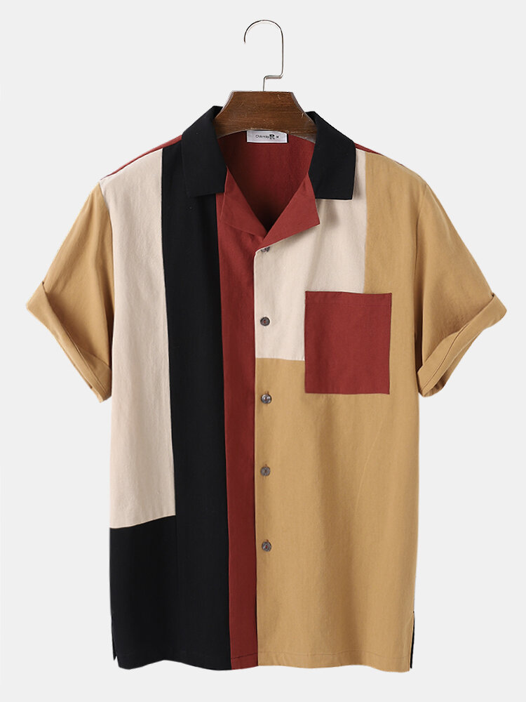 Brand:ChArmkpRDecoration:Pocket,ButtonFit Type:Regular FitMaterial: 100% CottonNeckline:LapelPattern Type:PatchworkScene:Leisure,Home,CasualSeason:SummerSize:XXL,L,S,XL,MSleeve:Short SleeveStyle:CasualThickness:Regular