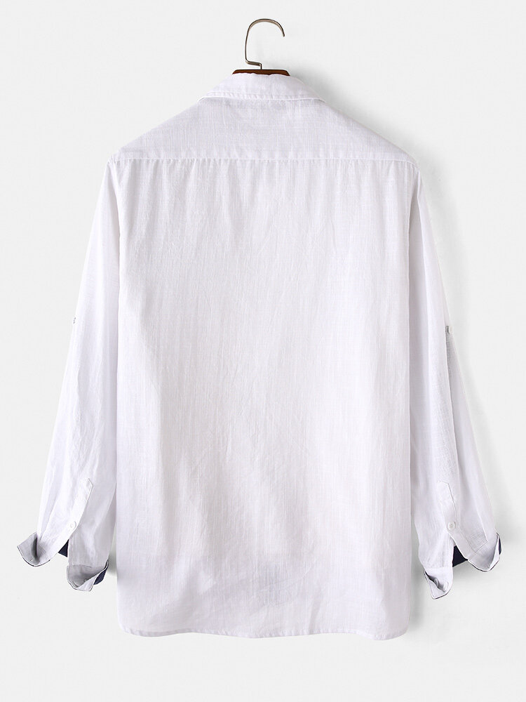 Mens Casual 100% Cotton Practical Pocket Lapel Buttons Leisure Shirts – White M