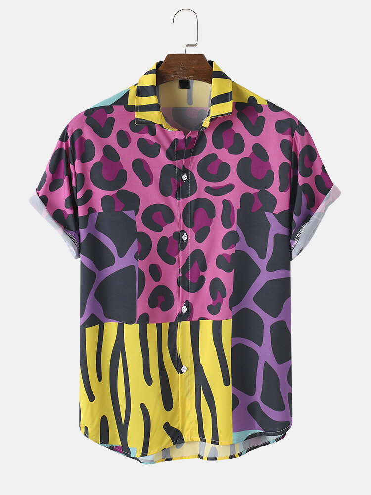 Decoration:Pocket,Button,PatternFit Type:Regular FitMaterial:PolyesterNeckline:LapelPattern Type:AnimalScene:Leisure,Home,CasualSeason:SummerSize:M,XXL,L,S,XLSleeve:Short SleeveStyle:CasualThickness:Regular