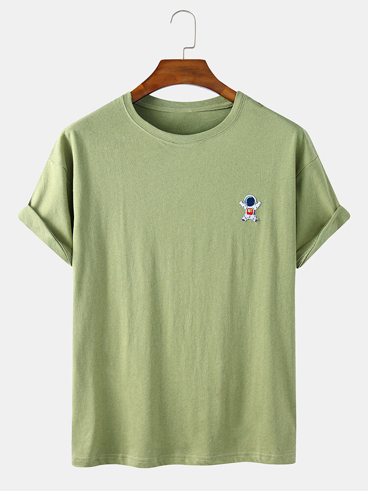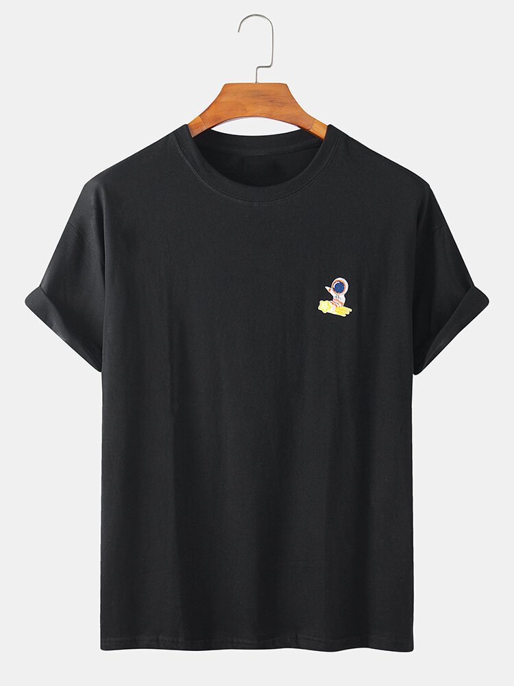 Mens Casual Astronaut Cartoon Solid Color Round Neck T-Shirts – White 2XL