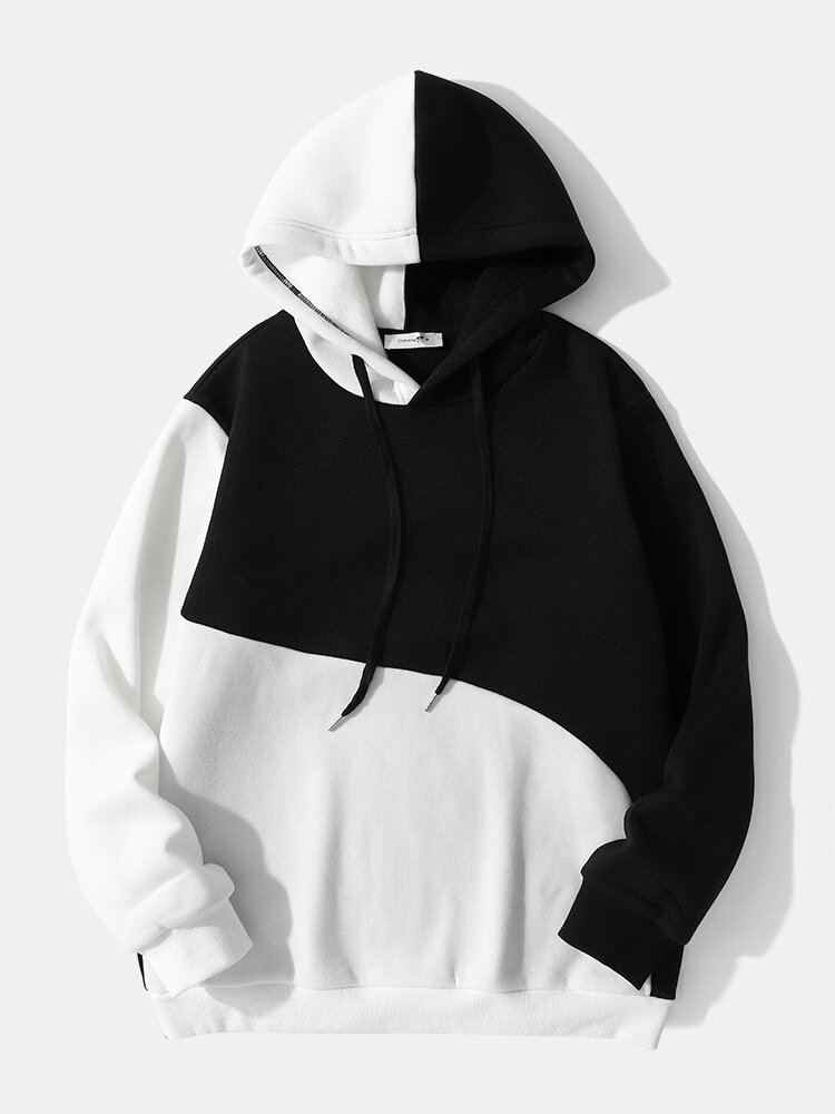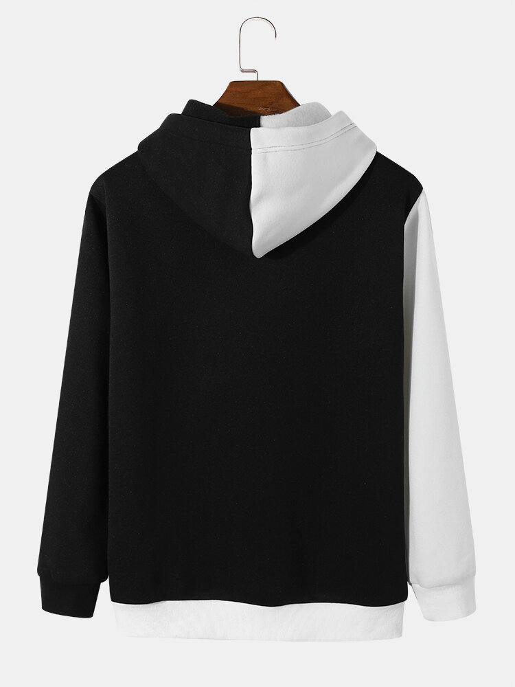 Mens Casual Color Block Patchwork Drawstring Hoodies – Black S