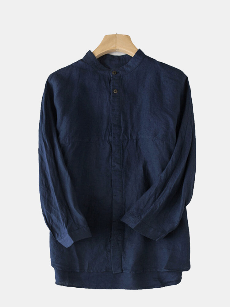 Brand Name: INCERUNPattern Type: Solid ColorItem Type: ShirtsFit Type: LooseGender: MenThickness: RegularStyle: Casual, Vintage, Chinese StyleSeason: Spring, Summer, AutumnCollar: Stand CollarWeight: 0.2kgMaterial: 100% CottonColor: Khaki, White, NavyCuff Type: Shirt SleevesOccasion: Casual DailySleeve Length: Long SleeveClosure Type: Single-breasted