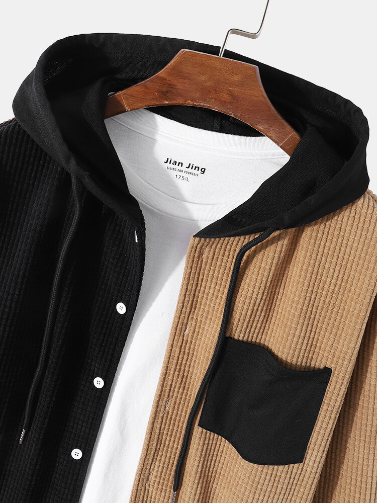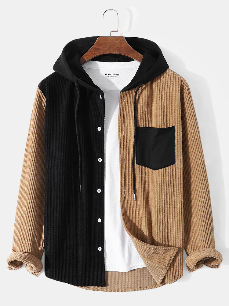 Mens Casual Corduroy Hooded Button Pocket Comfy Shirts – Apricot XL