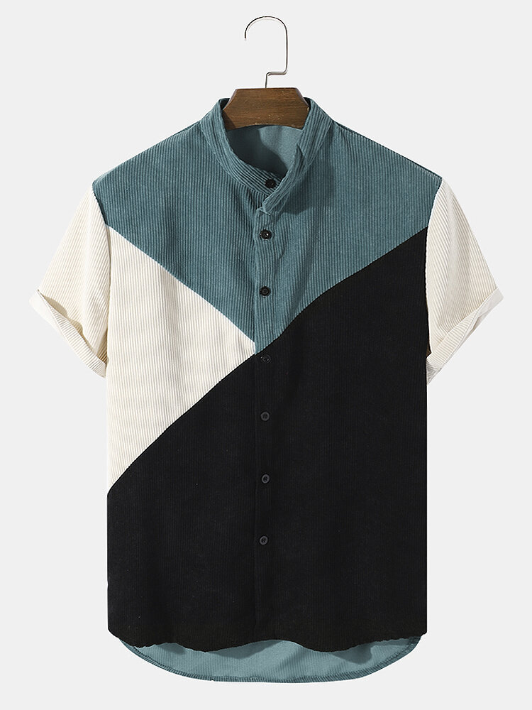 Brand:ChArmkpRDecoration:ButtonFit Type:Regular FitMaterial:PolyesterNeckline:Stand CollarPattern Type:Color BlockScene:Leisure,Home,CasualSeason:SummerSize:M,XXL,L,S,XLSleeve:Short SleeveStyle:CasualThickness:Regular