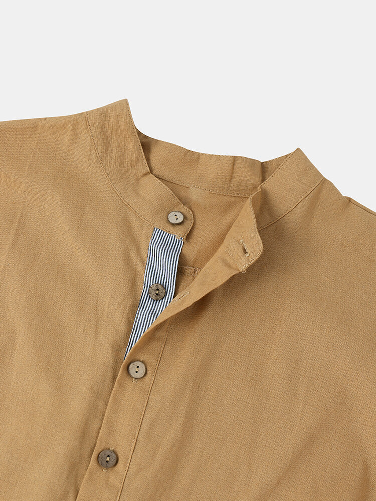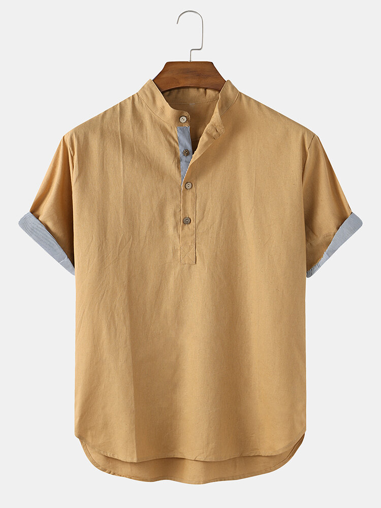 Description:Decoration:ButtonFit Type:Regular FitMaterial:Cotton & LinenNeckline:Stand CollarPattern Type:SolidScene:CasualSeason:SummerSize:XXL,L,S,XL,MSleeve:Short SleeveStyle:CasualThickness:Regular