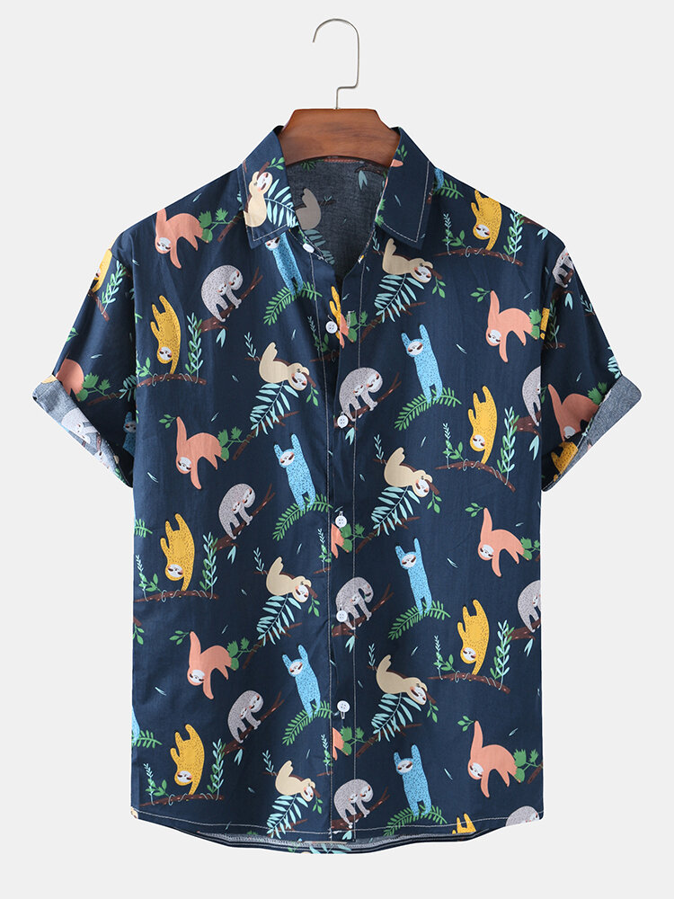 Description:Fit Type:Regular FitMaterial:CottonNeckline:LapelPattern Type:Animal,CartoonScene:Leisure,Home,CasualSeason:SummerSize:XXXL,XXL,L,S,XL,MSleeve:Short SleeveStyle:Casual,Cute,Cartoon