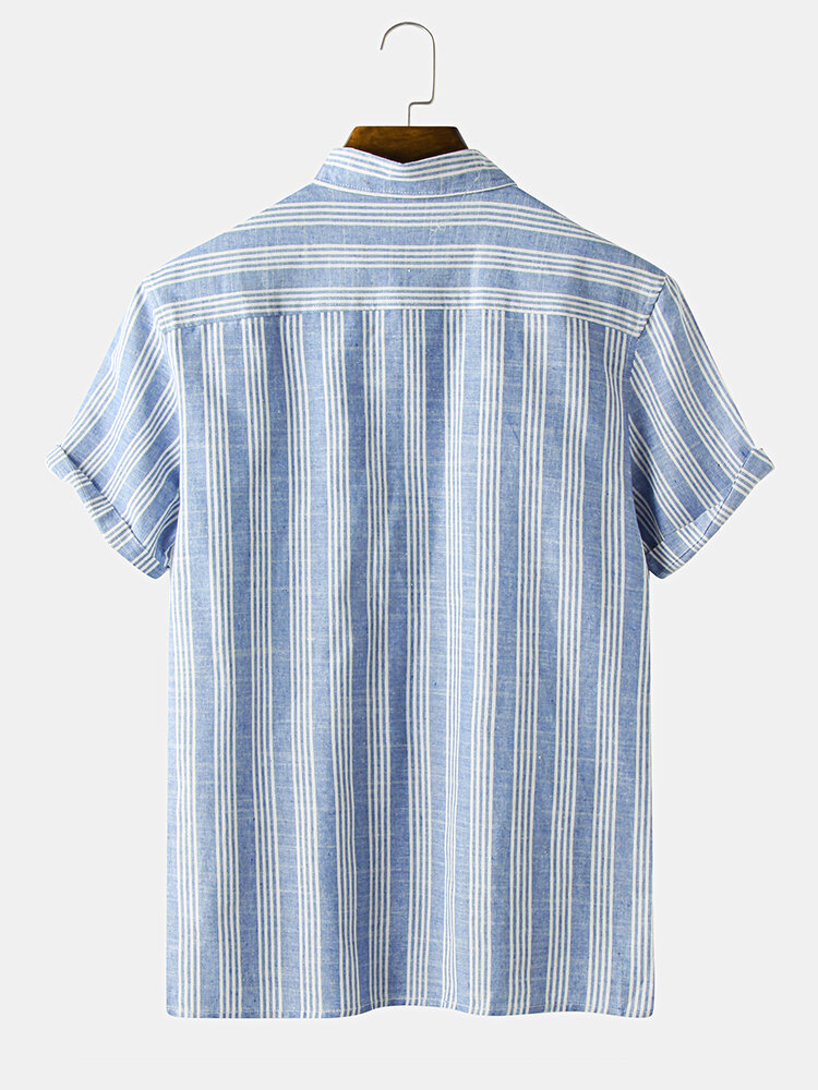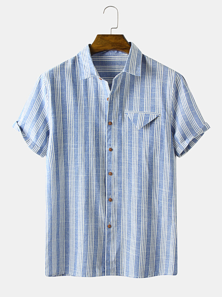 Brand:ChArmkpRDecoration:Pocket,ButtonFit Type:Regular FitMaterial:Cotton,PolyesterNeckline:LapelPattern Type:StripedScene:Leisure,Home,CasualSeason:SummerSize:XXL,L,S,XL,MSleeve:Short SleeveStyle:CasualThickness:Regular