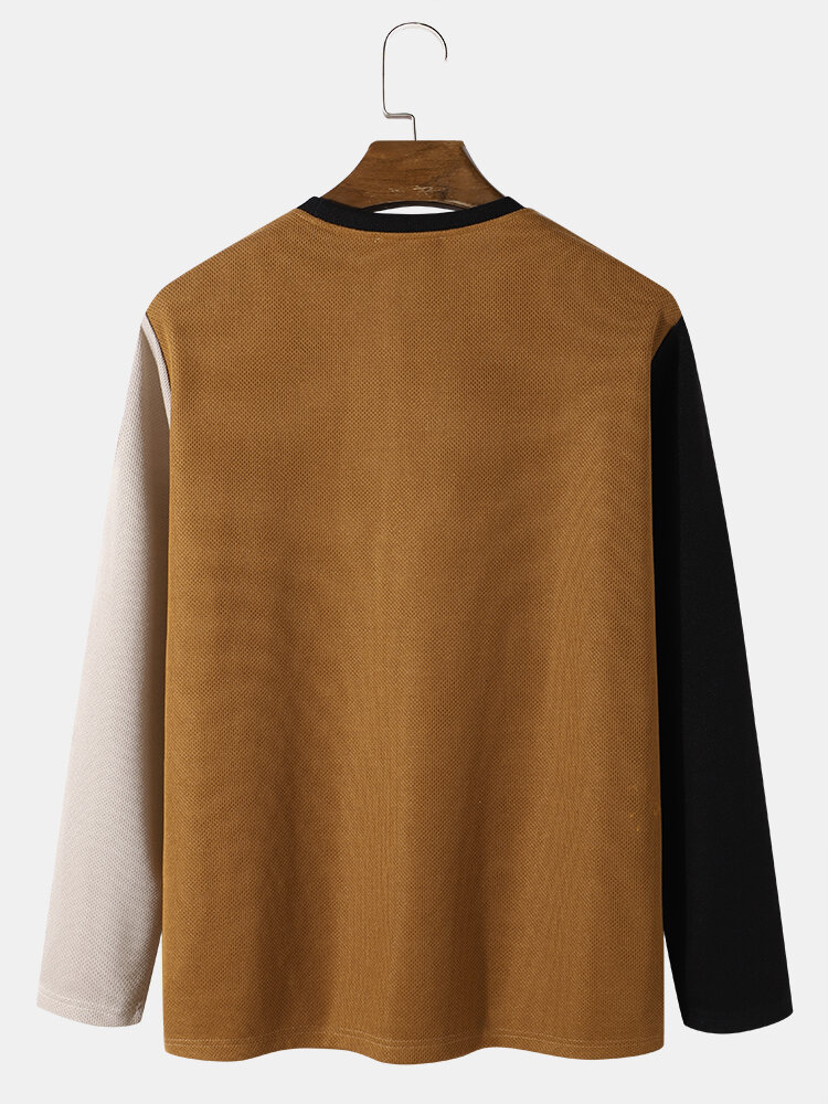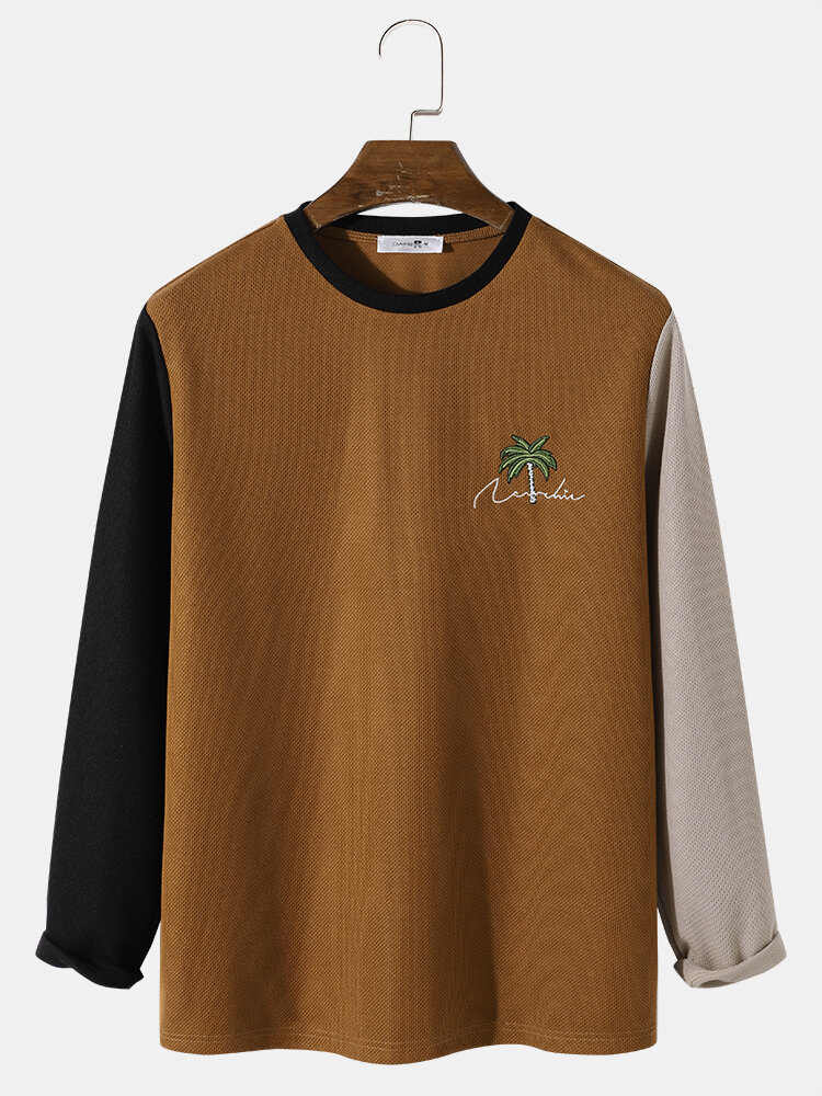 Mens Casual Embroidery Long Sleeve T-Shirts – Brown S