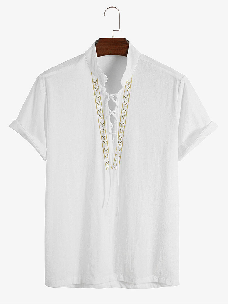 Brand:ChArmkpRDecoration:PatternFit Type:Regular FitMaterial:100%CottonNeckline:Stand CollarPattern Type:EmbroideryScene:Leisure,Home,CasualSeason:SummerSize:XXL,L,S,XL,MSleeve:Short SleeveStyle:CasualThickness:Regular