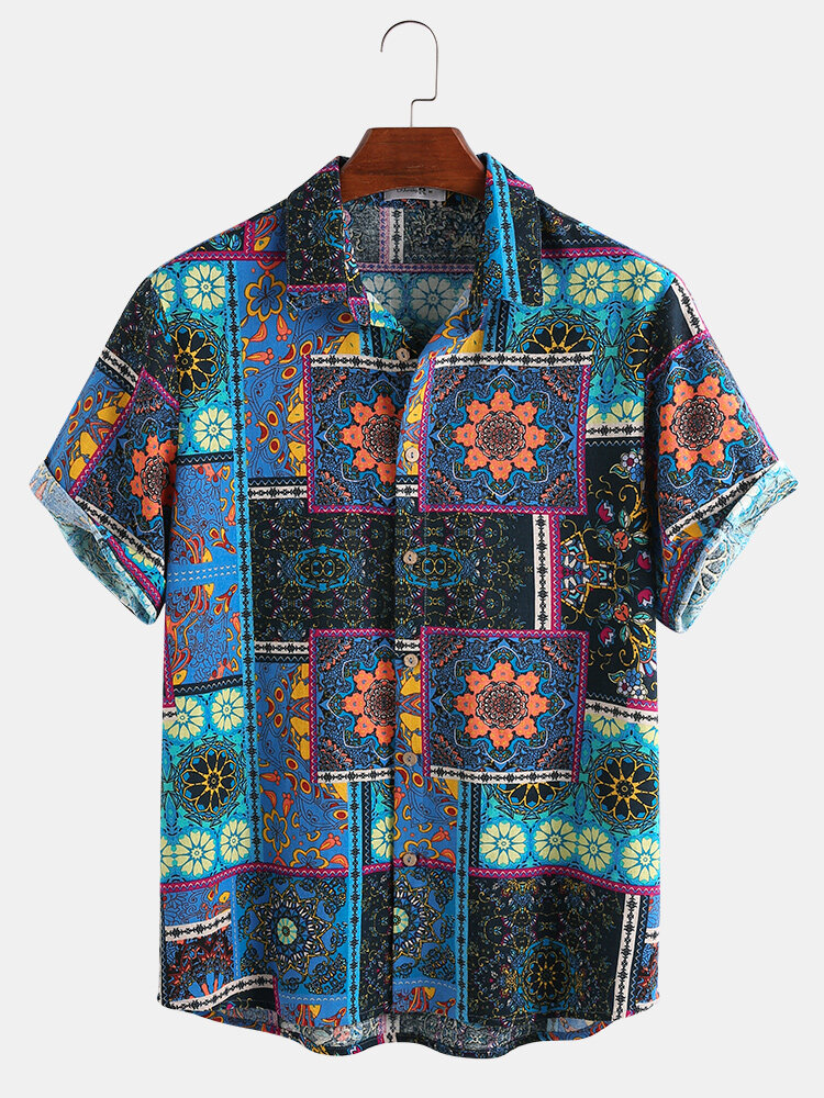Brand:ChArmkpRClosure Type:Single BreastedCollar:Turn-down CollarColor:Blue,RedCrafts:PrintingCuff Type:Shirt SleevesDecoration:PatternFit Type:FitLength:RegularMaterial:CottonOccasion:Casual,Home,LeisurePattern: FloralSeason:Spring,SummerSize:2XL,3XL,L,M,XLSleeve Length:Short SleeveStyle:Casual,Fashion,LeisureThickness:Regular