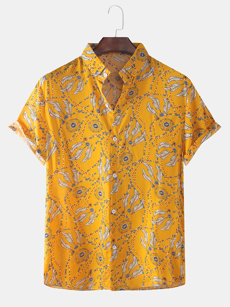 Description:Item Type: ShirtsPattern Type: PrintingGender: MenFit Type: FitStyle: Casual,FashionThickness: RegularCollar: Turn Down CollarSeason: SummerDecorations: PatternMaterial: 65% PolyesterSleeve Length: Short SleeveColor: Yellow,Black,WhiteCuff Type: Shirt SleeveOccasion: Leisure,Home,Daylife