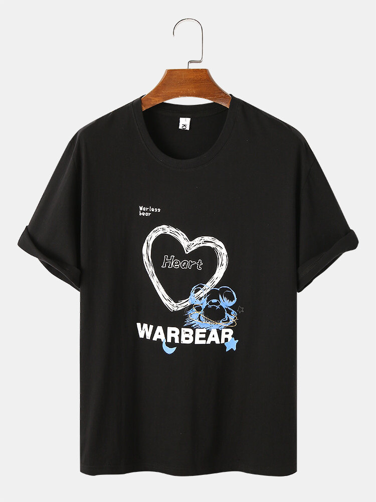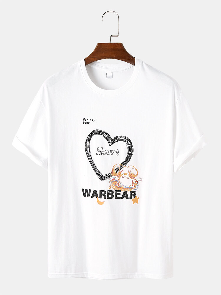 Mens Casual Heart Shaped Pattern Letter Print T-Shirts – White M