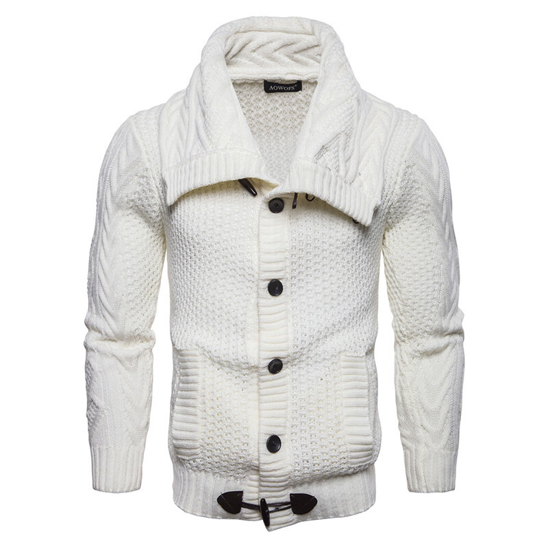 Men’s Casual Knit Flexible Breathable Thickened Sweaters – 2XL white