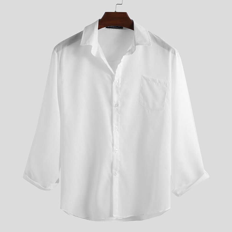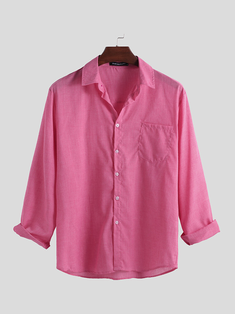 Men’s Casual Long Sleeve Shirt Collar Neck Button Casual Formal Office Tees Tops – 2XL Red