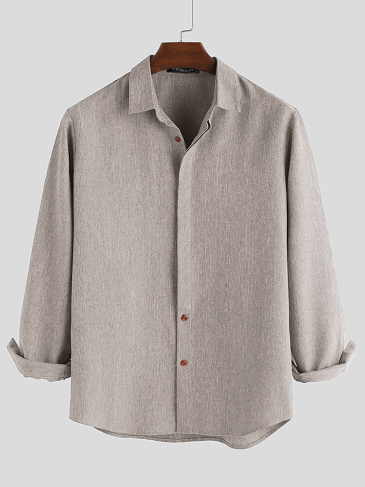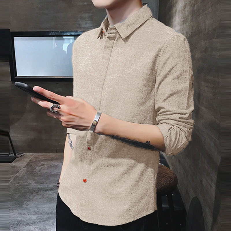 Men’s Casual Long Sleeve Shirts Casual Loose Stand Collar Solid Tees Tops Autumn – 2XL Khaki