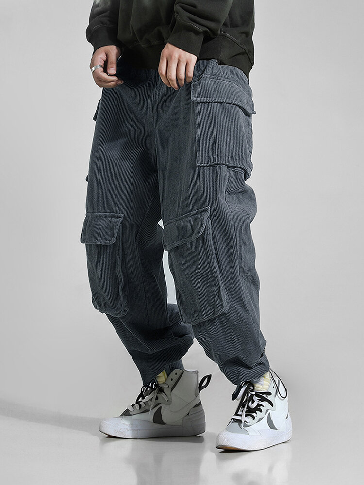 Item Type: PantsFit Type: Regular Closure Type: Elastic Waist Gender: MenDecoration: Solid ColorMaterial: 100% Polyester Thickness: StandardDecoration:Multi PocketsStyle: Casual,Fashion Season: Spring,Autumn,WinterWaist Type: Mid Rise Color: Blue,Coffee,GreyPants Type: Straight-leg PantsLength: Long Occasion: Leisure,Daylife Package includes: