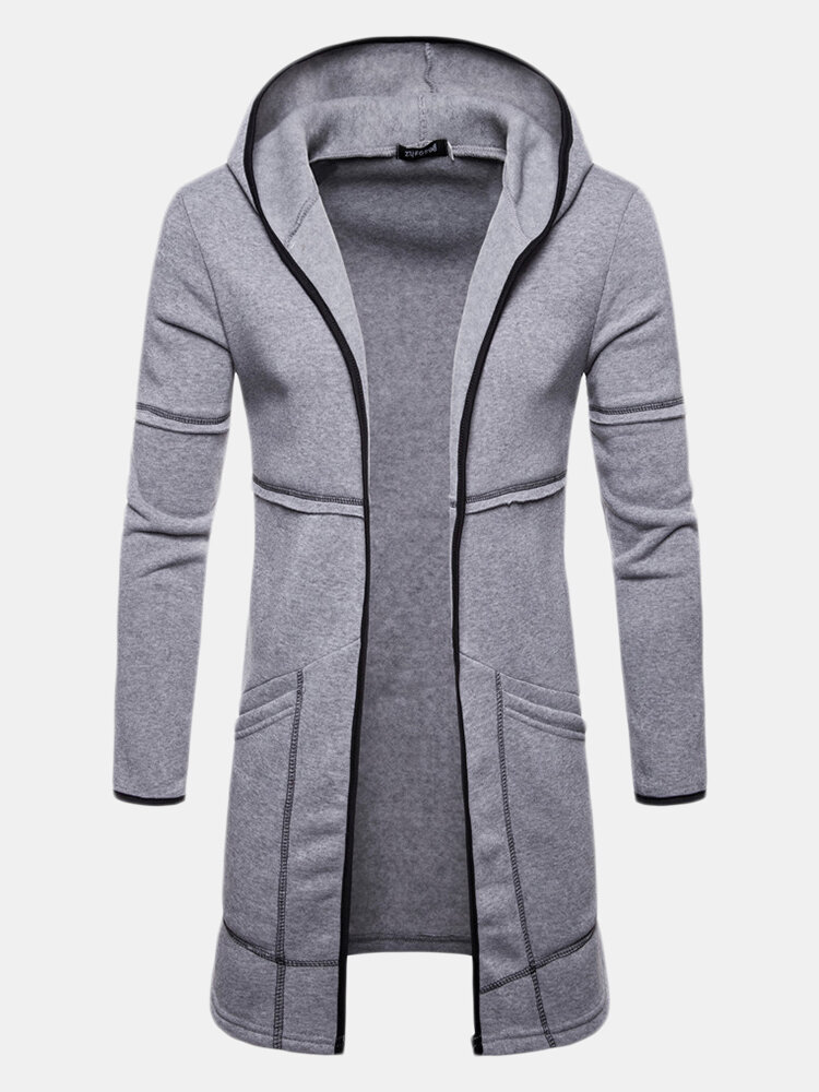 Mens Casual Mid Long Solid Color Long Sleeve Sweatshirts – S Light Gray