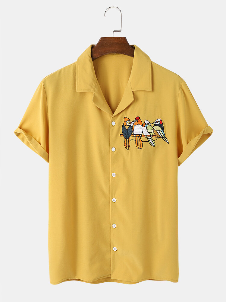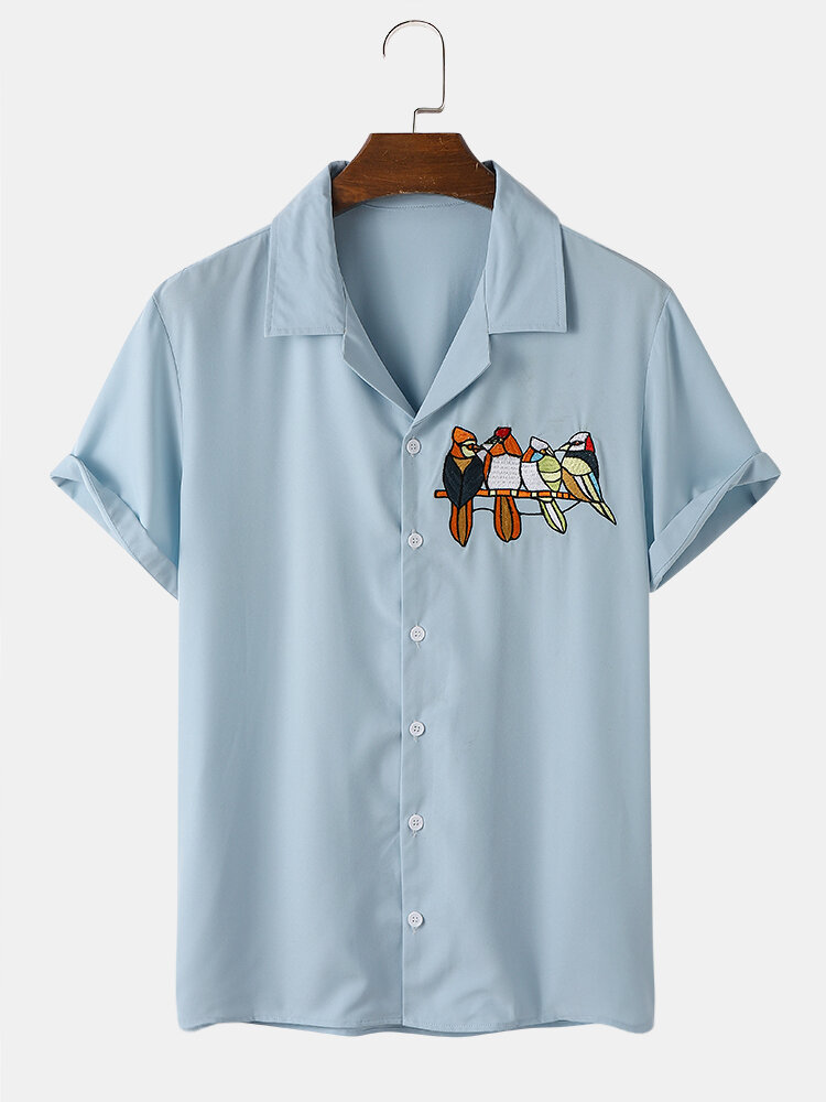 Mens Casual Multi Birds Hanging Print Short Sleeve Shirts – Blue 2XL