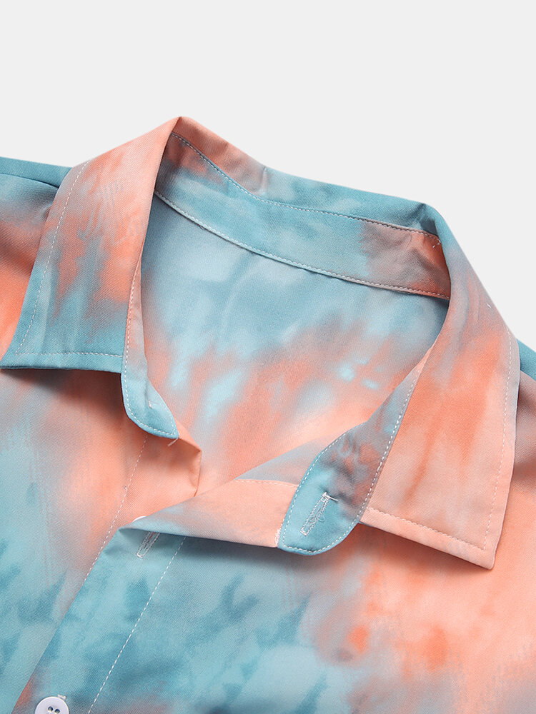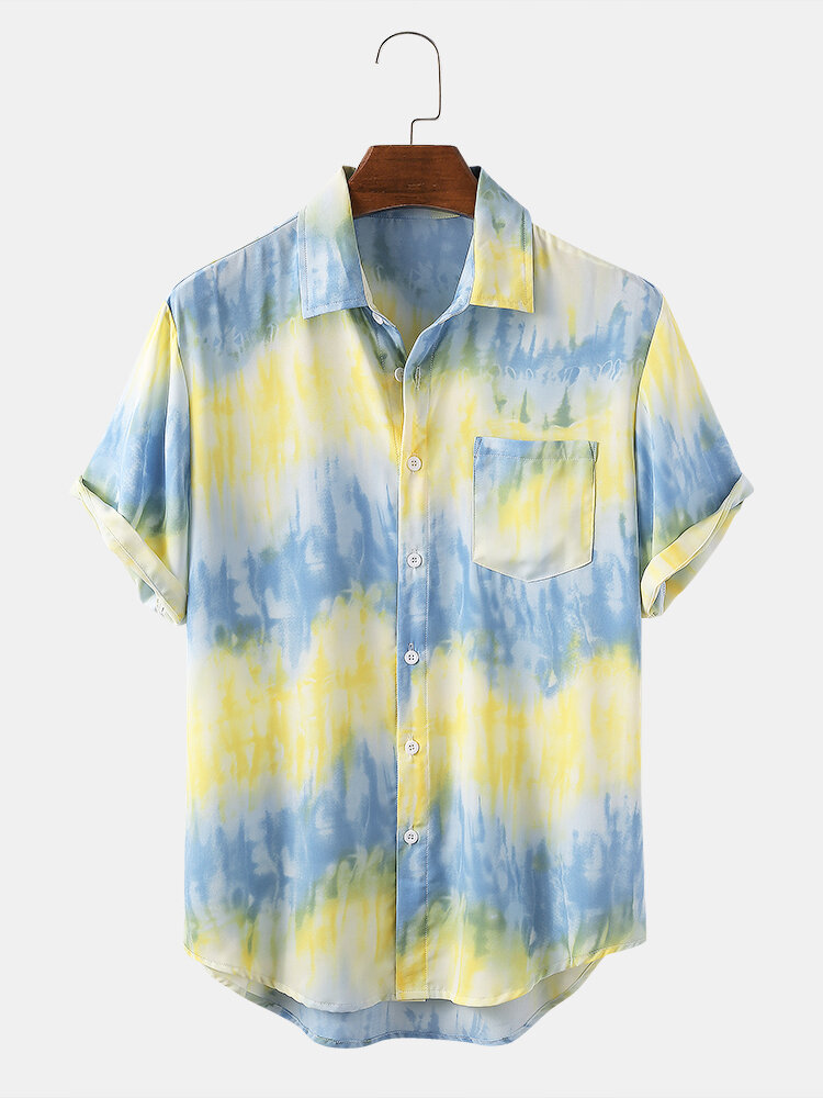 Mens Casual Patchwork Tie Dye Print Turn Down Collar Shirts – Yellow M