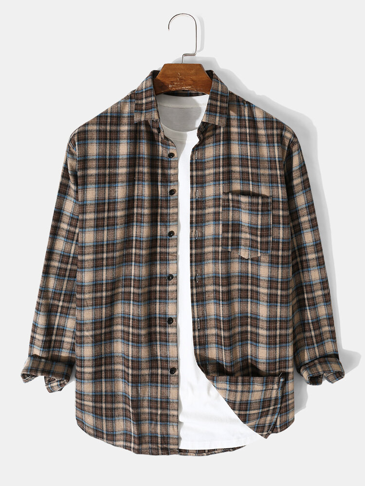 Description:Decoration:PlaidFit Type:Regular FitMaterial:CottonNeckline:LapelPattern Type:PlaidScene:Leisure,Home,CasualSeason:Spring,Autumn,WinterSize:XXL,L,S,XL,MSleeve:Long SleeveStyle:CasualThickness:Regular