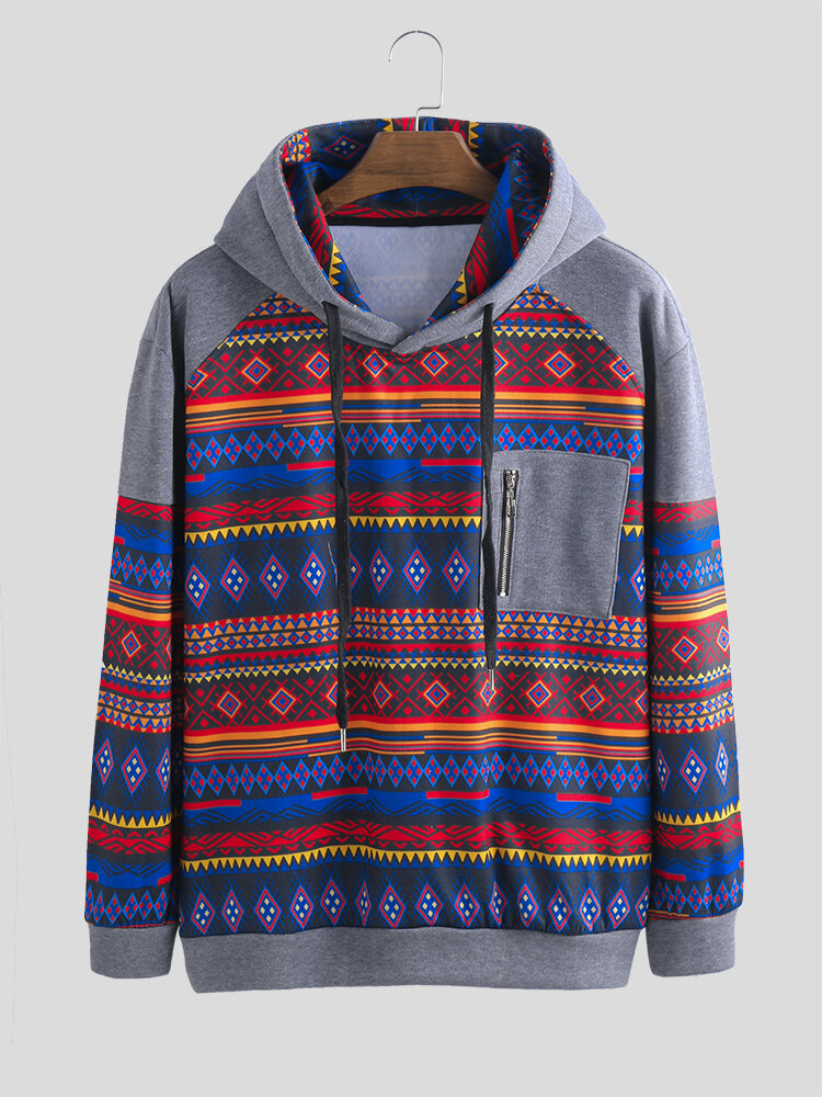 Mens Casual Printing Hooded Practical Pocket Sweatshirt – 3XL Grey
