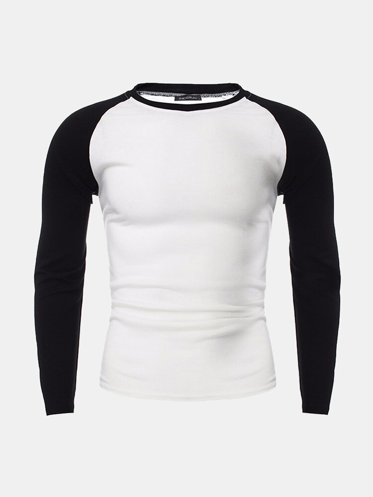 Mens Casual Slim Shirt Crew Neck Raglan Baseball Long Sleeve T-shirt Sports Tops – S Dark Grey