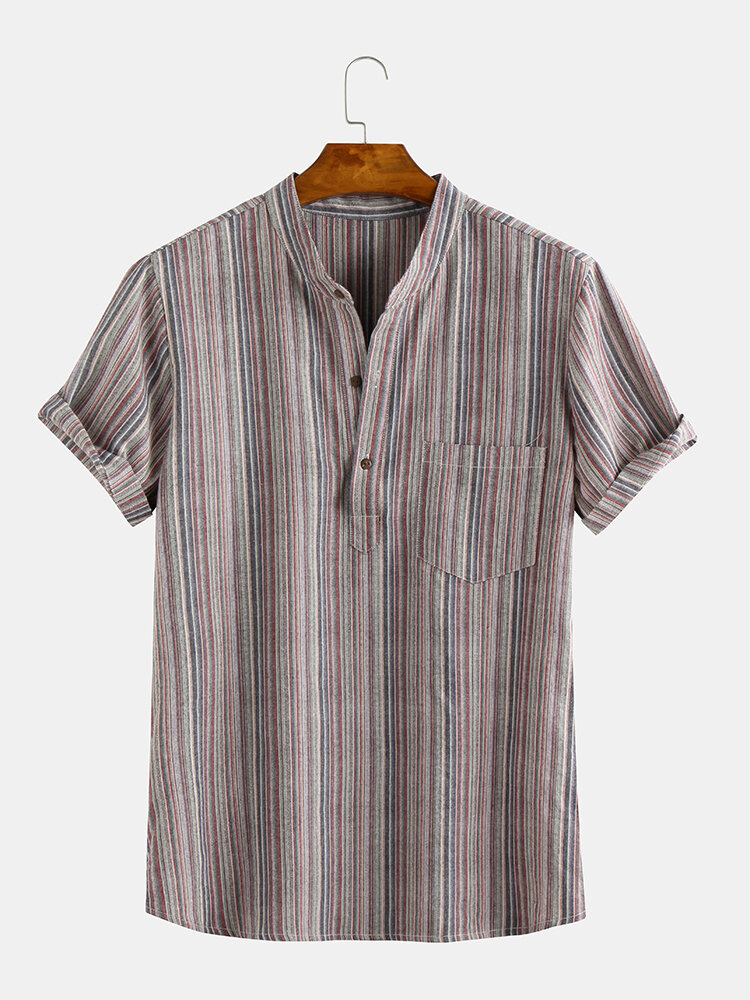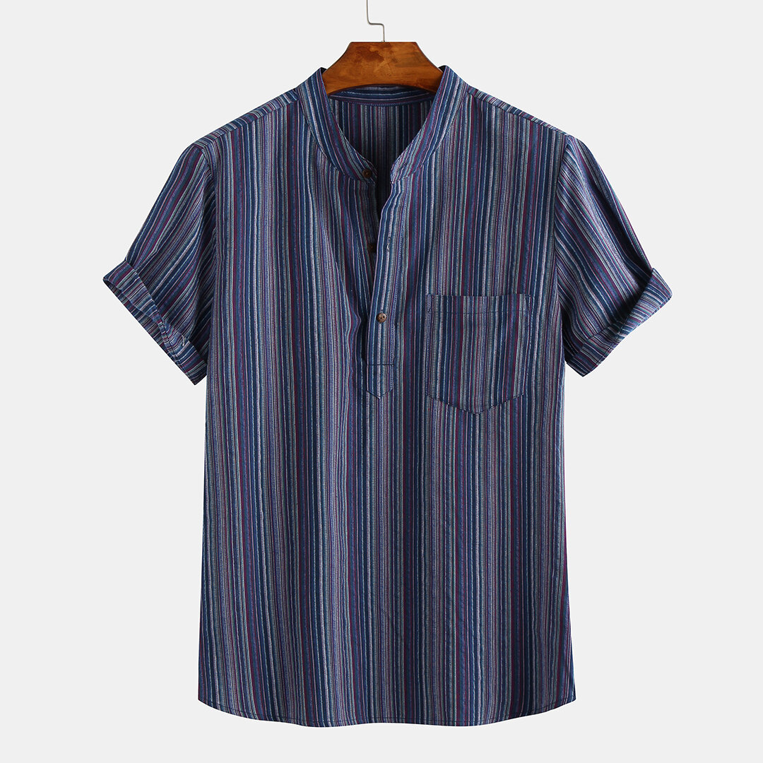 Mens Casual Slim Striped Short Sleeve Pocket Shirts – XL Yellow