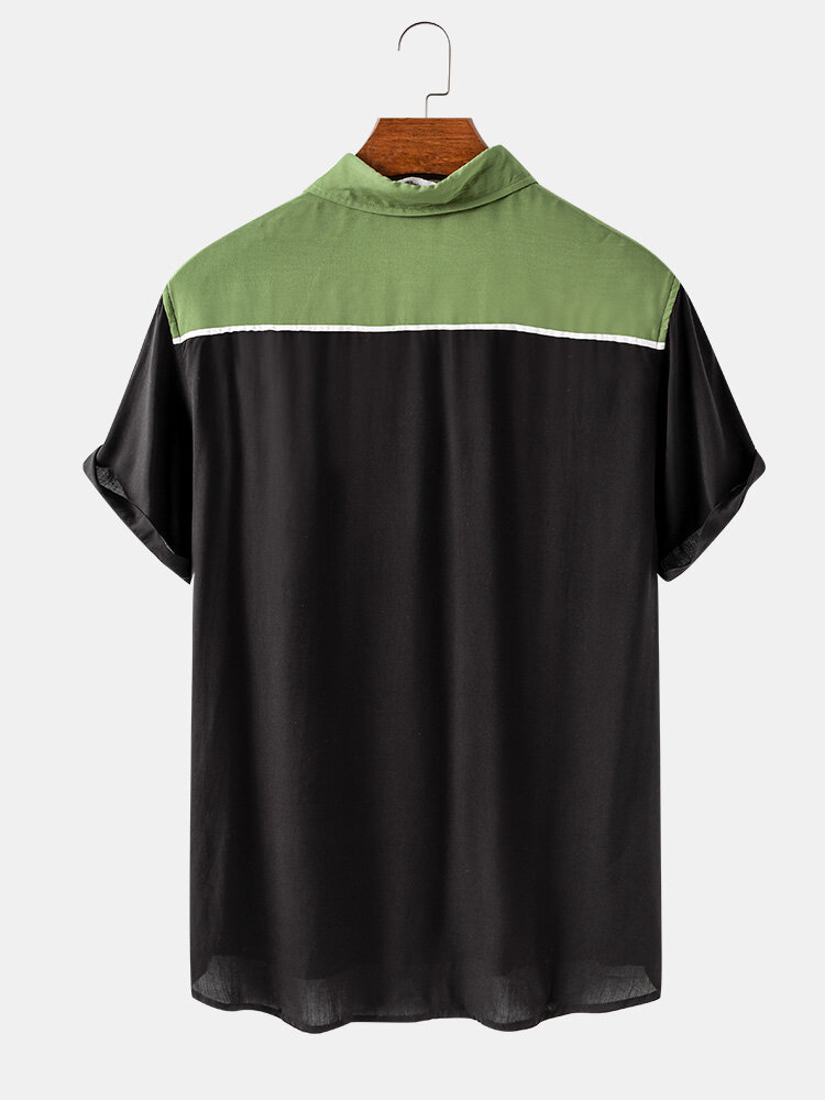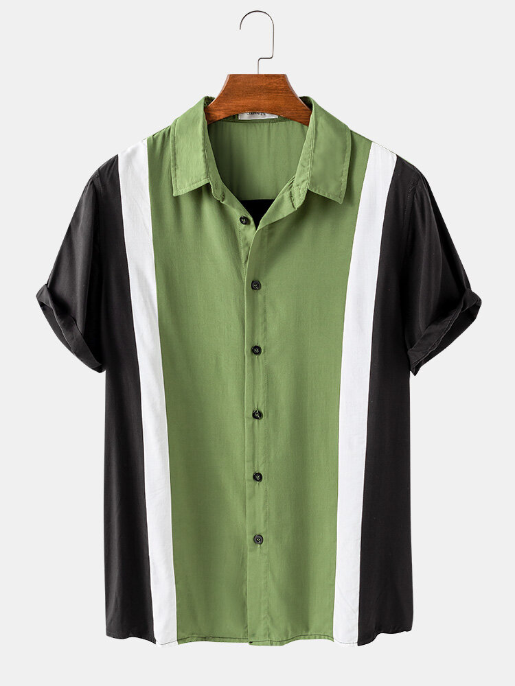 Decoration:ButtonFit Type:Regular FitMaterial:RayonNeckline:LapelPattern Type:Patchwork,SolidScene:Leisure,Home,CasualSeason:SummerSize:XXL,L,S,XL,MSleeve:Short SleevePackage Included: 1*Shirt