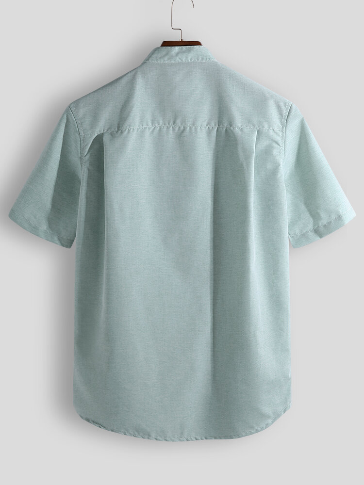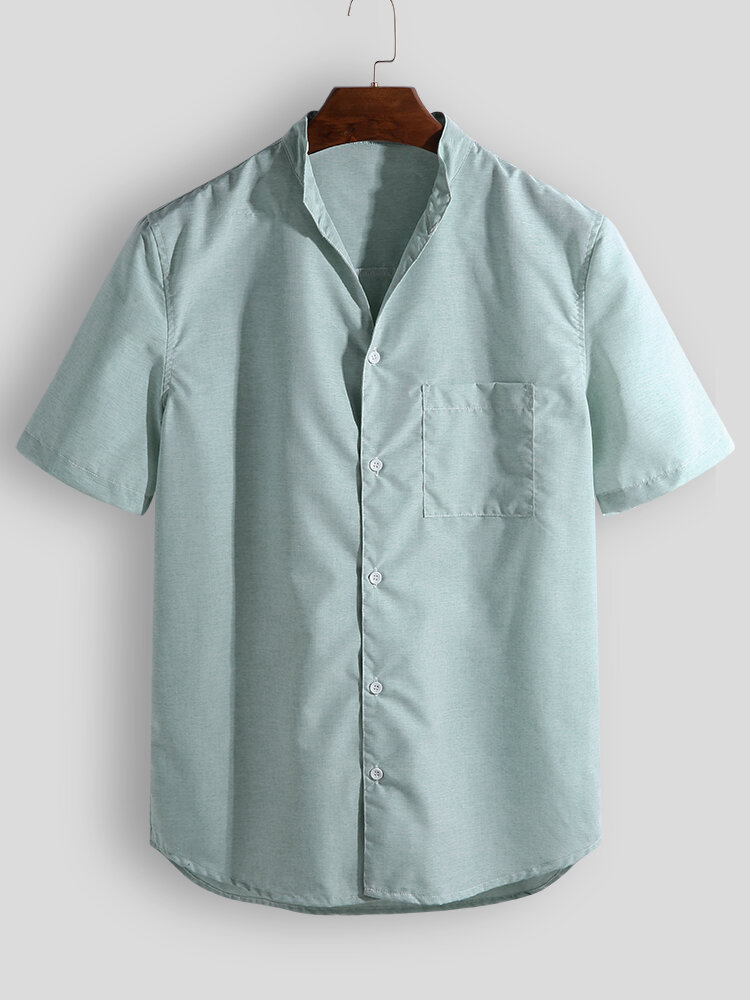 Mens Casual Stand Collar Practical Pocket Short Sleeve Summer Shirts – M light pink
