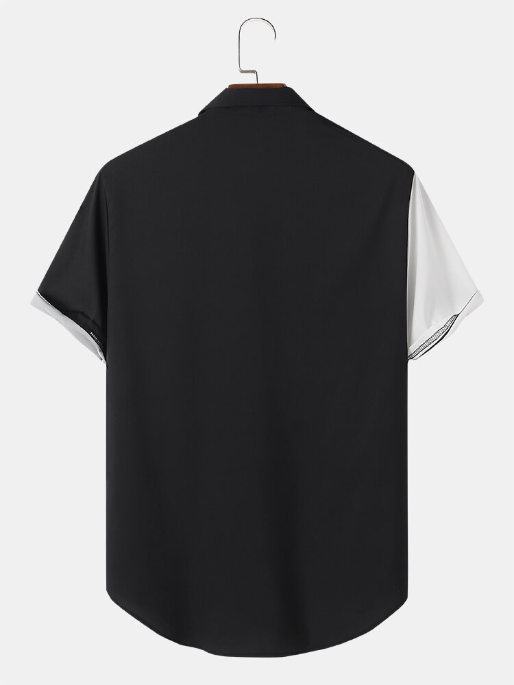 Mens Casual Sun Print Color Block Short Sleeve Shirts – Black S