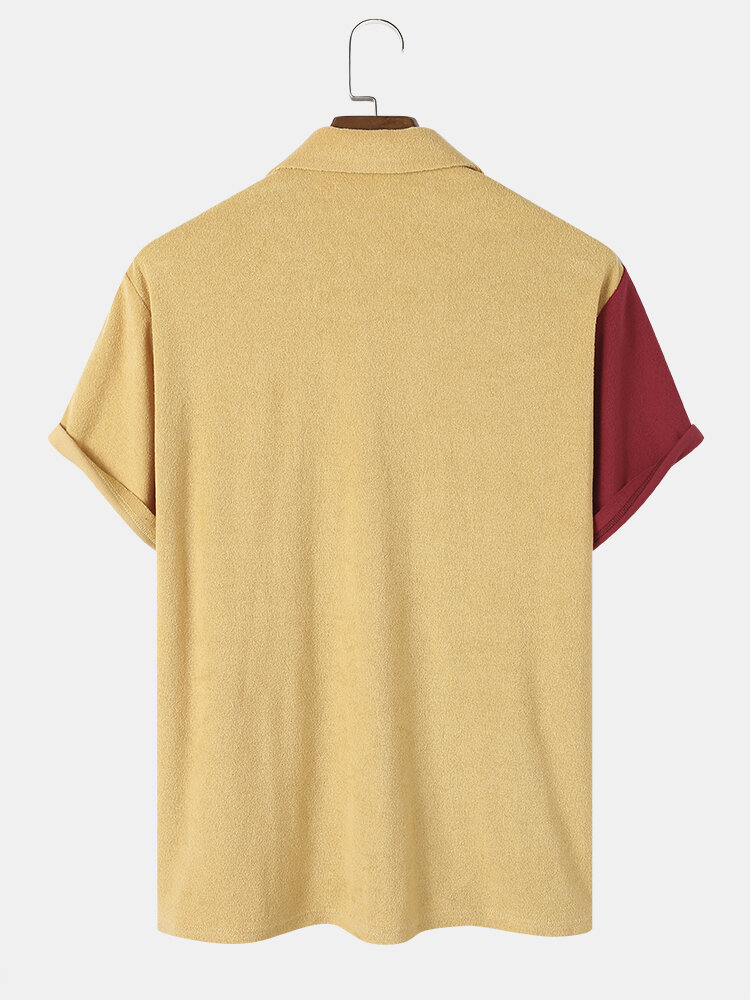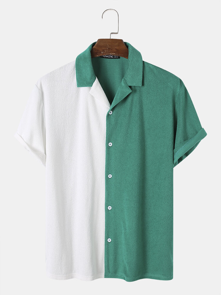 Mens Casual Towelling Two Tone Patchwork Revere Collar Shirts – Green S