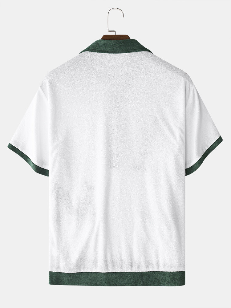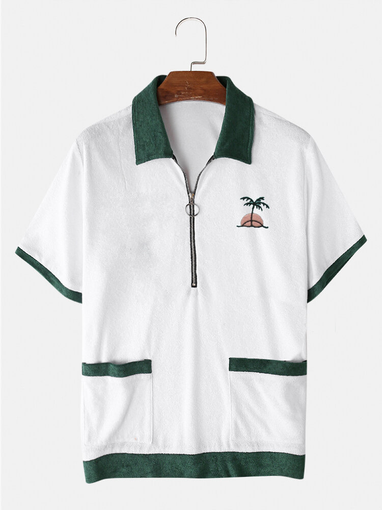 Mens Causal Half Zip Embroidery Contrast Towelling Golf Shirts – White XL
