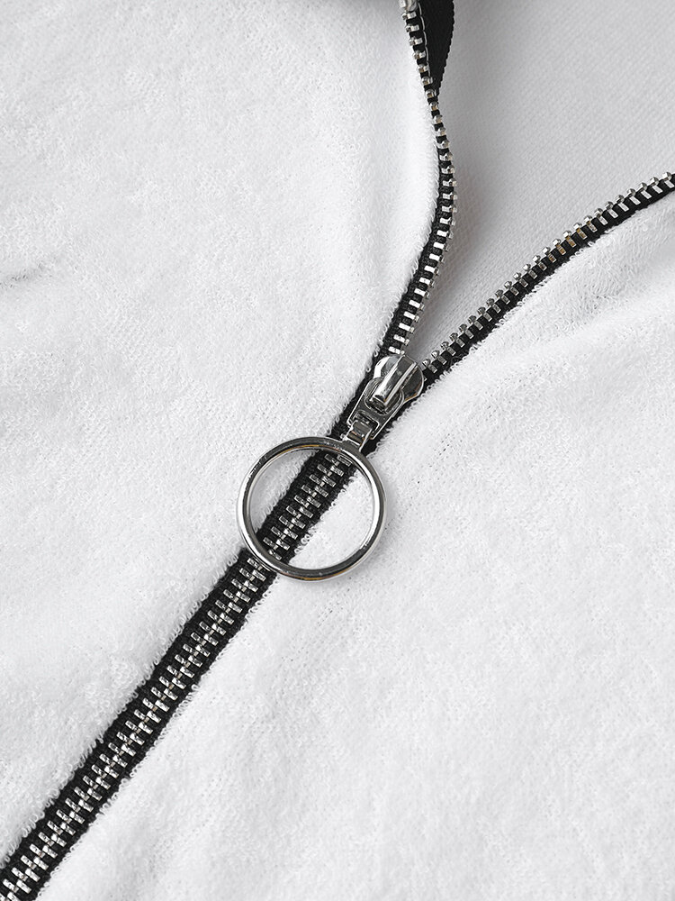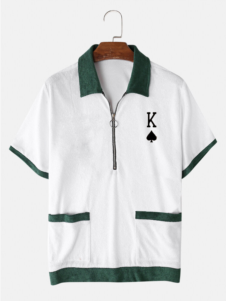 Mens Causal Towelling Poker Embroidery Half Zip Contrast Golf Shirts – White 2XL