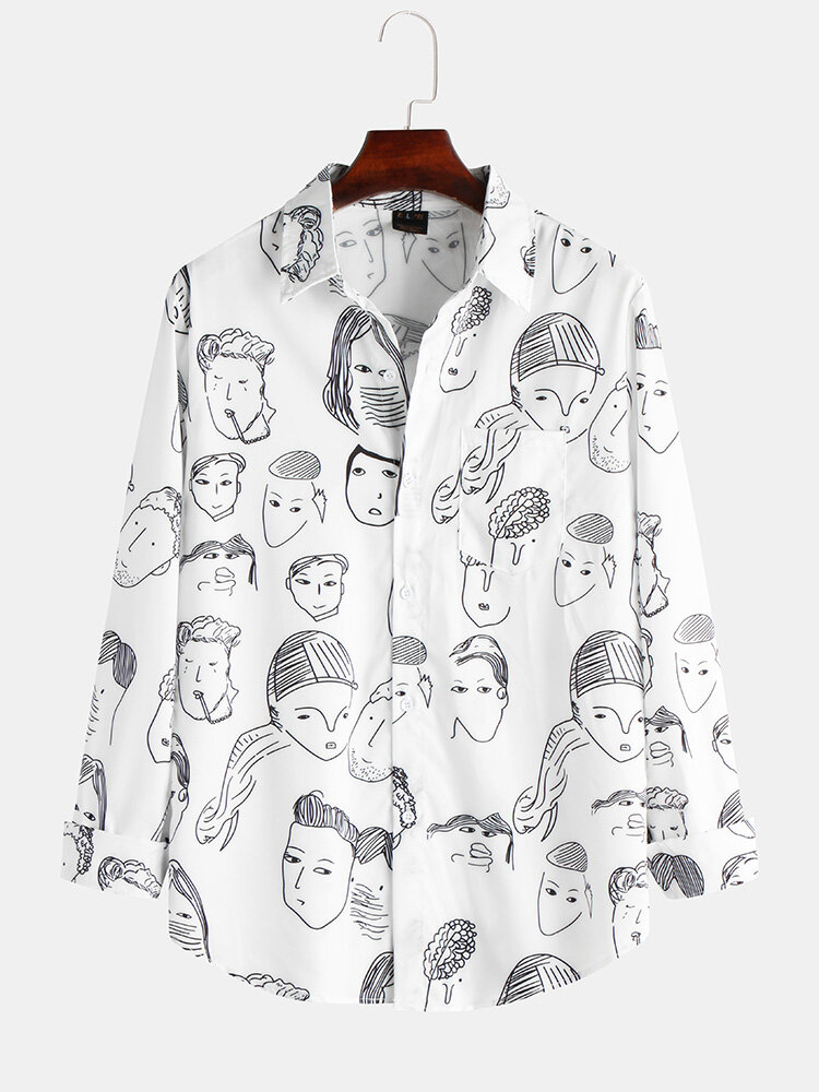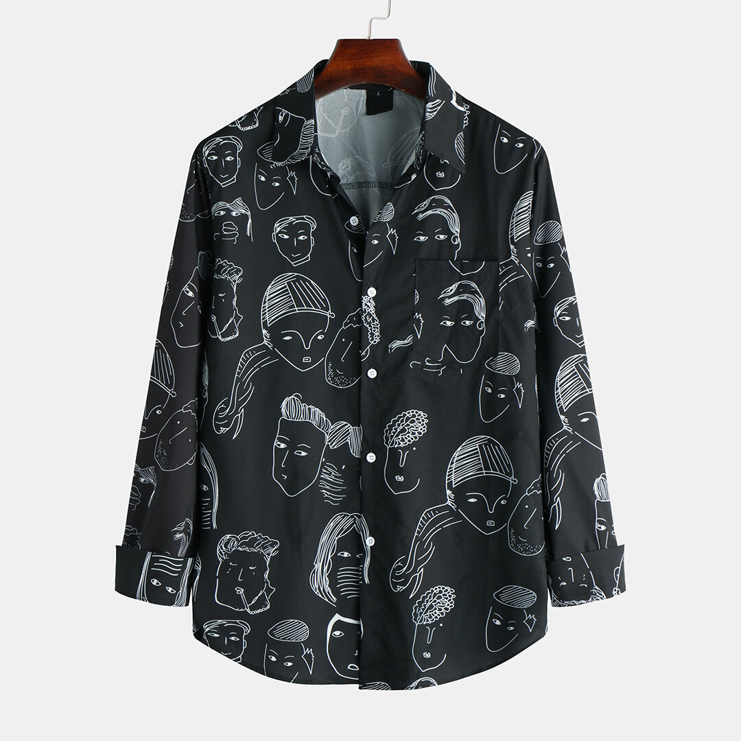 Mens Character Design Printed Long Sleeve Casual Shirts – XL Green