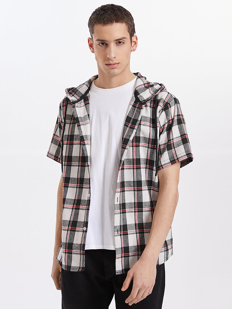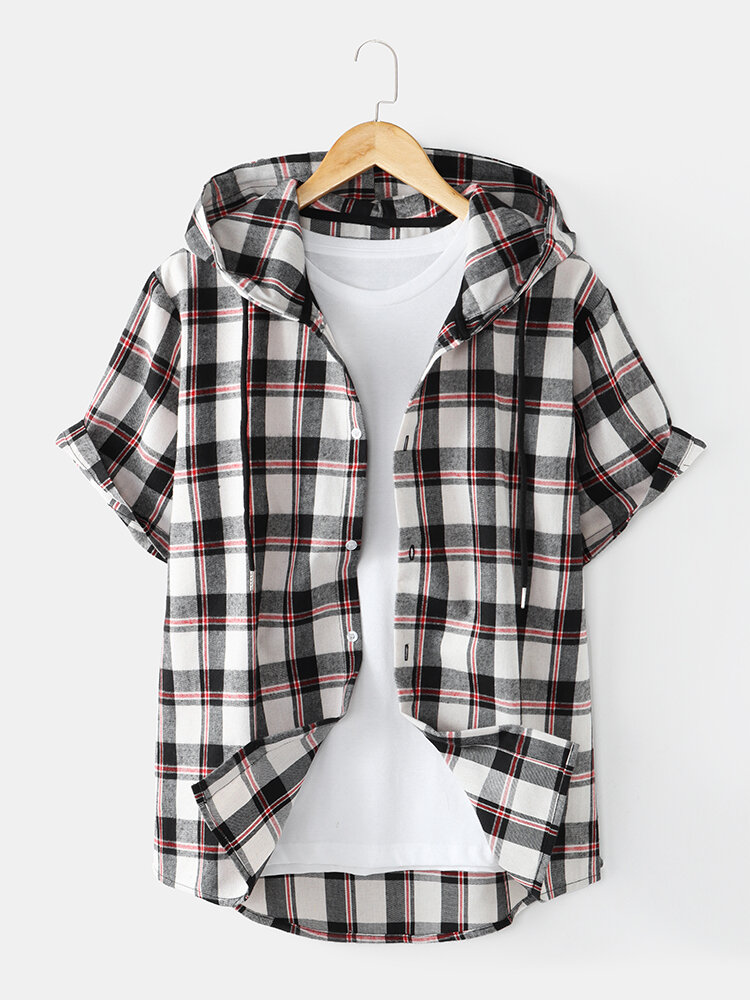 Description:Decoration:Hood,ButtonFit Type:Regular FitMaterial:PolyesterNeckline:HoodedPattern Type:PlaidScene:Leisure,CasualSeason:Spring,SummerSize:XXL,L,S,XL,MSleeve:Short SleeveStyle:CasualThickness:Regular