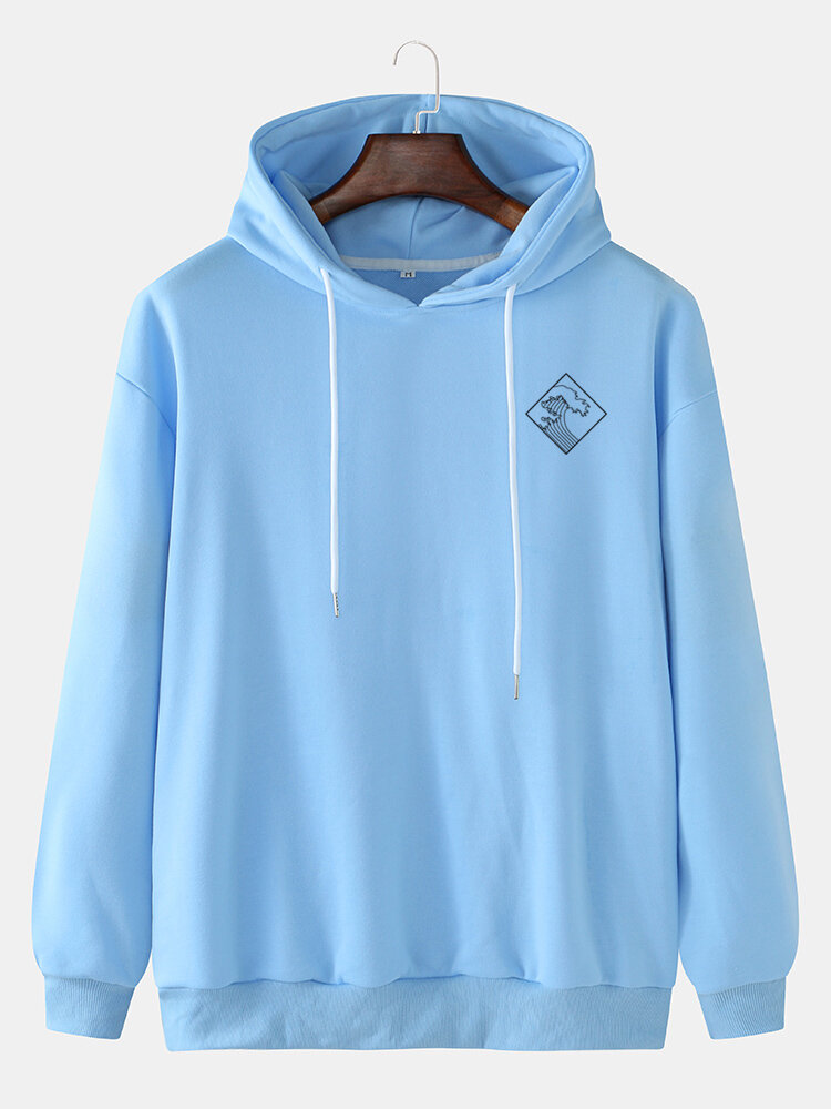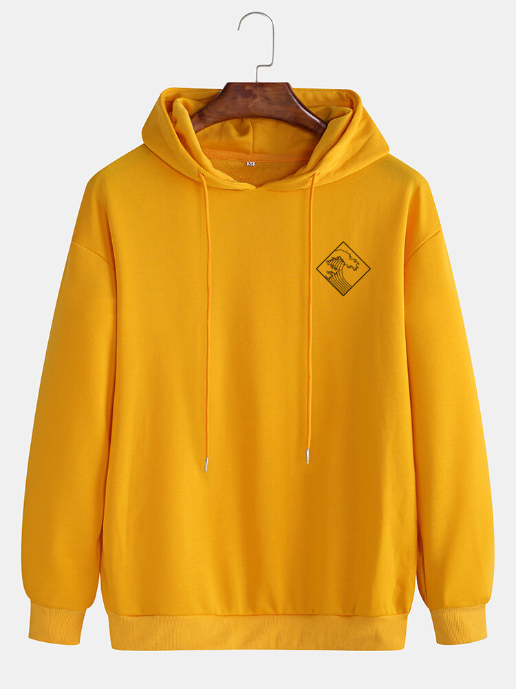 Mens Chest Wave Print Drop Shoulder Simple Long Sleeve Hoodies – Pink M