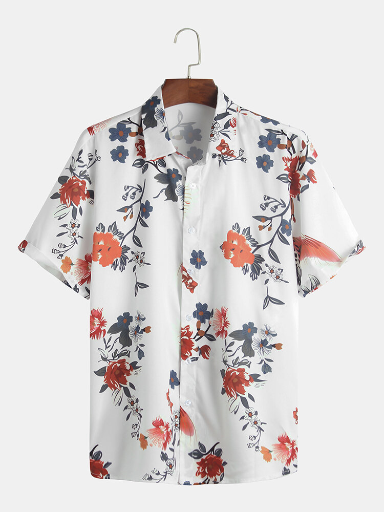 Mens Chinese Fashion Floral Printed Square Collar Shirts – S Black