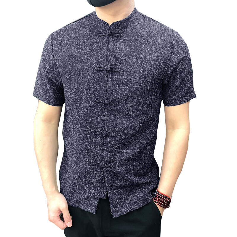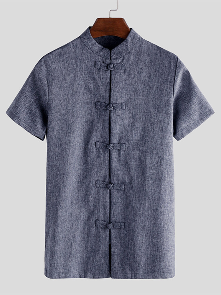 Mens Chinese Style Frog Button Up Short Sleeve T Shirt Loose Casual Shirt Tops – S Red