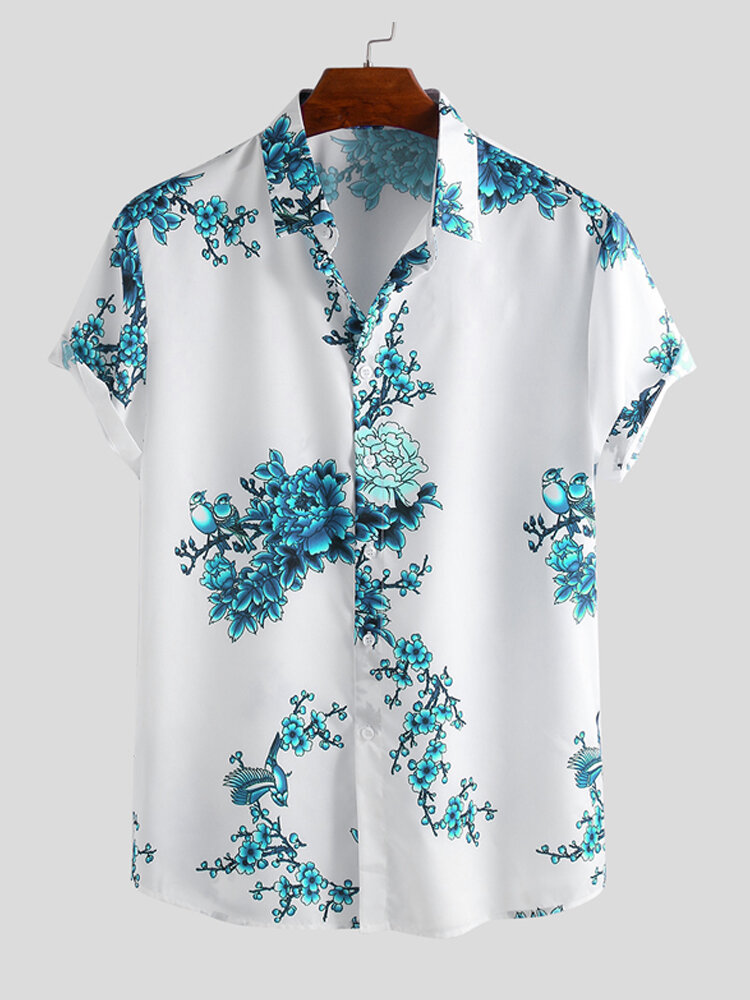 Fit Type:Regular Fit,Loose FitNeckline:LapelPattern Type:FloralScene:Leisure,CasualSeason:Spring,SummerSize:XXXL,XXL,L,XL,MSleeve:Short SleeveStyle:CasualThickness:Thin