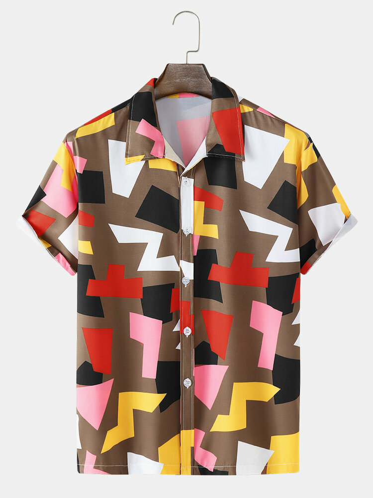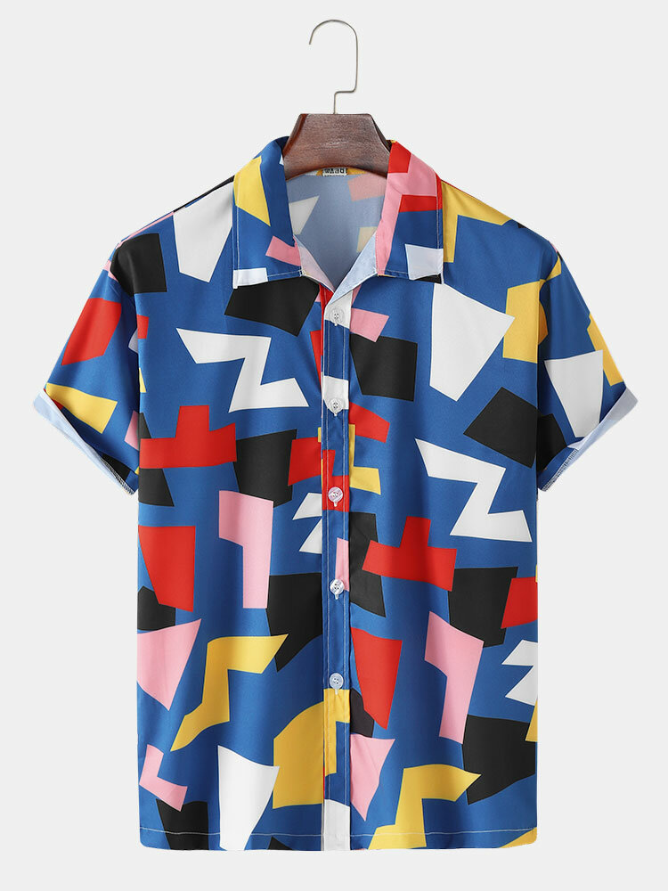 Decoration:PatternFit Type:Regular FitMaterial:SpandexNeckline:LapelPattern Type:Color BlockScene:Leisure,Home,CasualSeason:SummerSize:XXXL,L,S,XL,MSleeve:Short SleeveStyle:CasualThickness:Regular