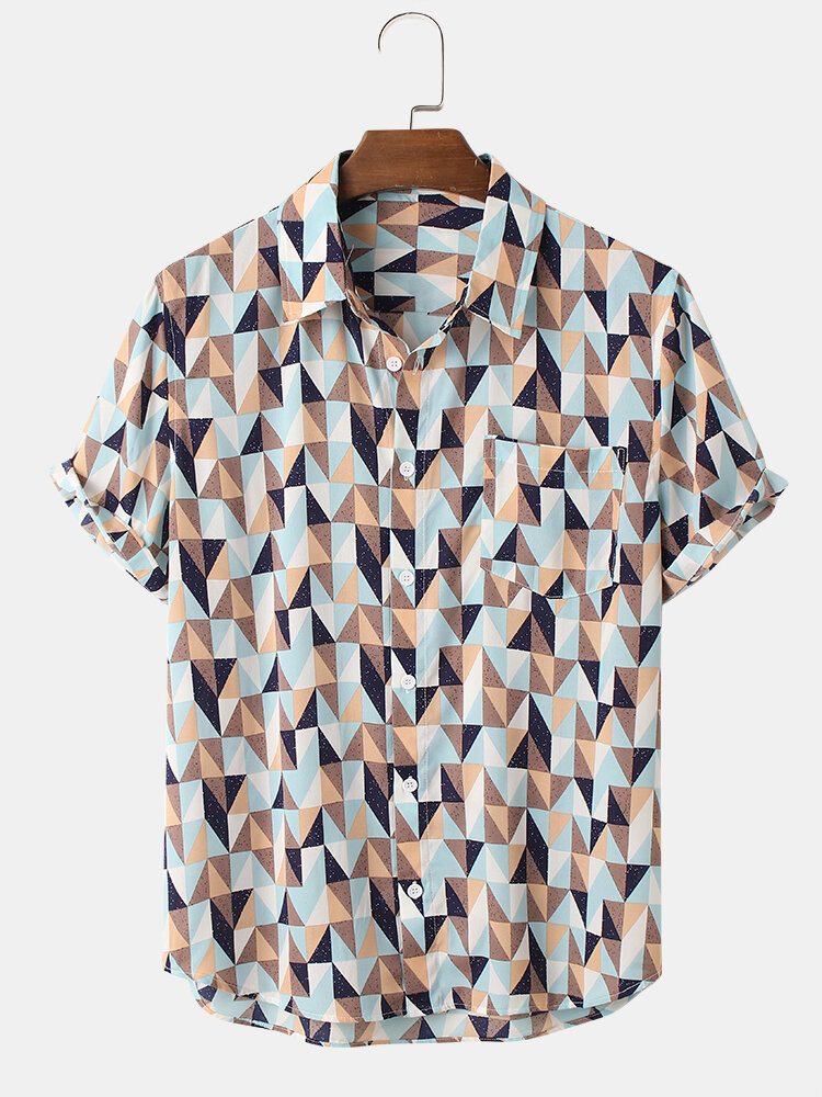 Decoration:PatternFit Type:Regular FitMaterial:PolyesterNeckline:LapelPattern Type:Geometric,Color BlockScene:Leisure,Outdoor,CasualSeason:Spring,Summer,AutumnSize:XXL,L,S,XL,MSleeve:Short SleeveStyle:CasualThickness:Thin