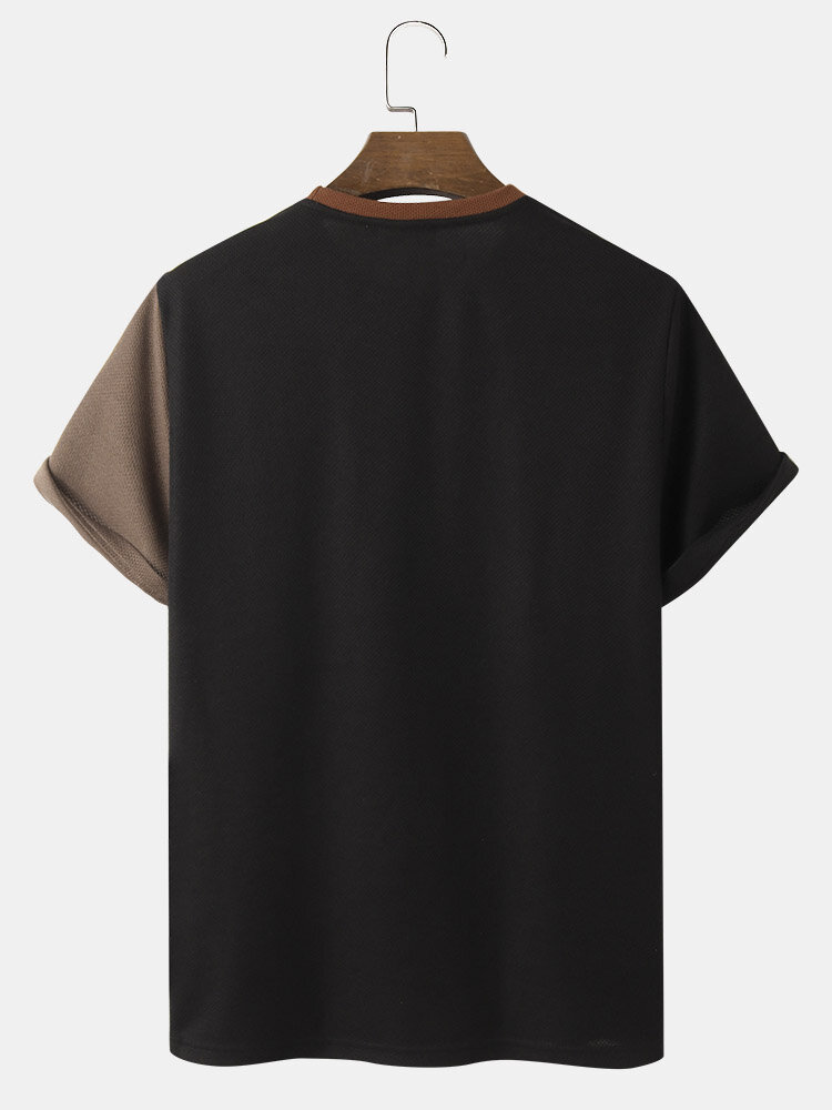 Mens Color Block Patchwork Crew Neck T-Shirts – Black S