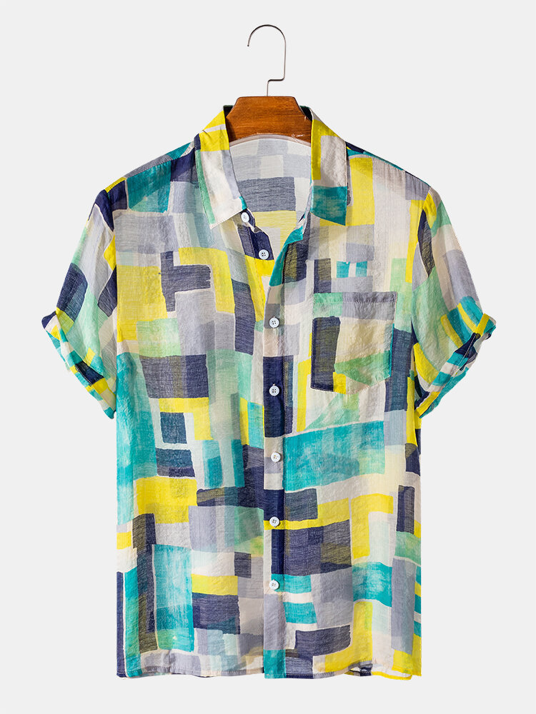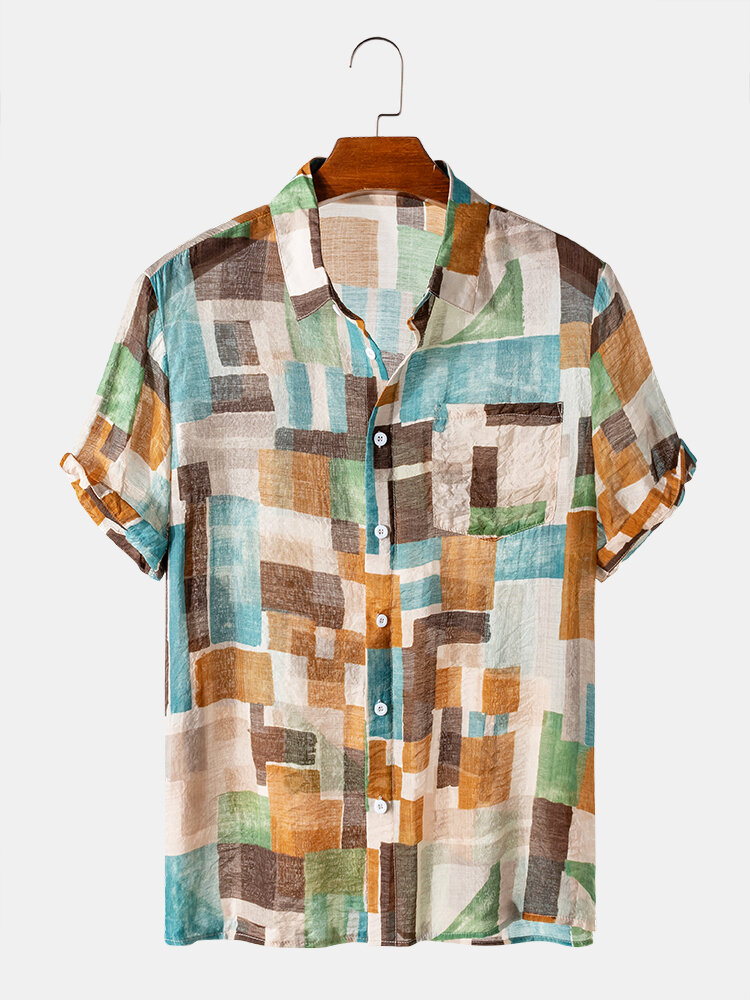 Brand:ChArmkpRDecoration:SplicingFit Type:Regular FitMaterial:PolyesterNeckline:LapelPattern Type:PatchworkScene:Leisure,CasualSeason:Spring,Summer,autumnSize:XXXL,XXL,L,XL,MSleeve:Short SleeveStyle:CasualThickness:Regular