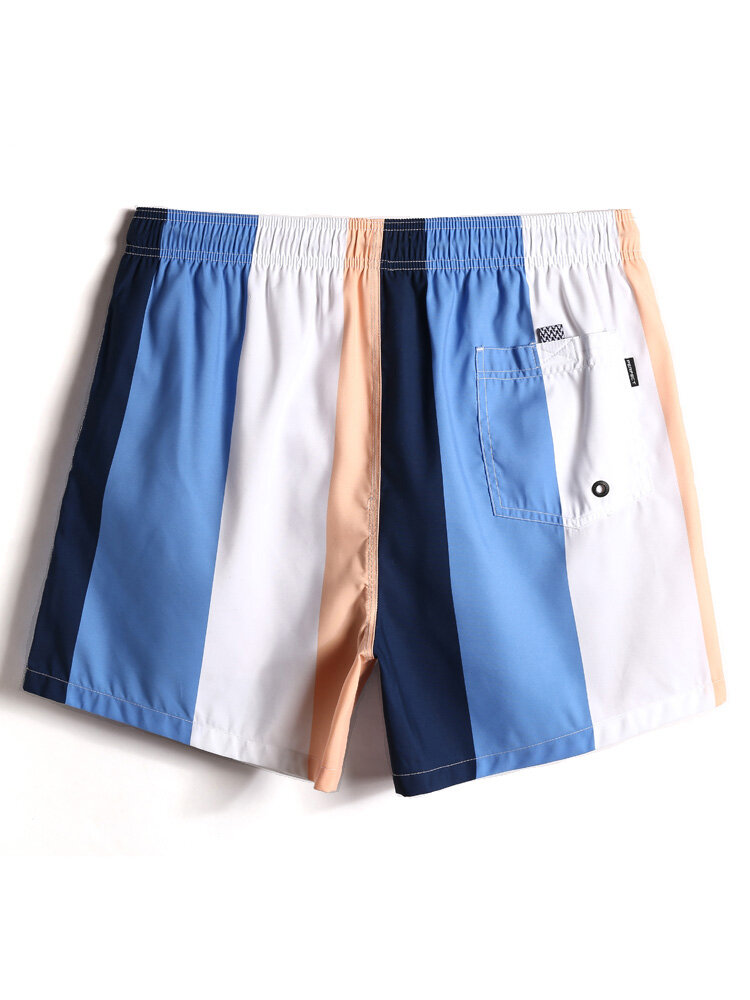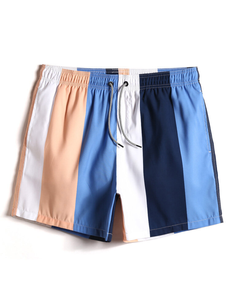 Mens Color Block Stripe Quick-Drying Drawstring Beach Shorts With Pocket – Colorful S